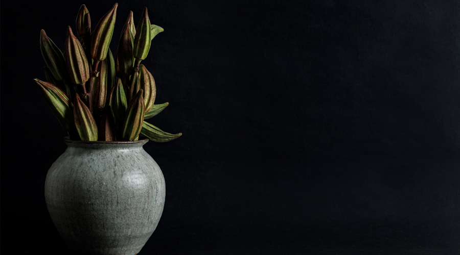 食卓に並べる料理を盛り付け、庭で育てた草花を生ける。