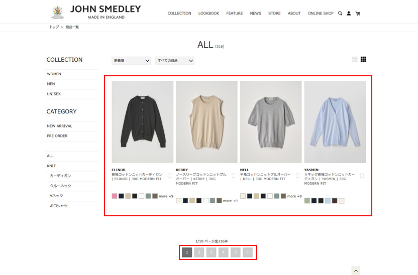 ページ下部にございますページ数や矢印を押すと、その他の一覧ページもご覧いただけます。