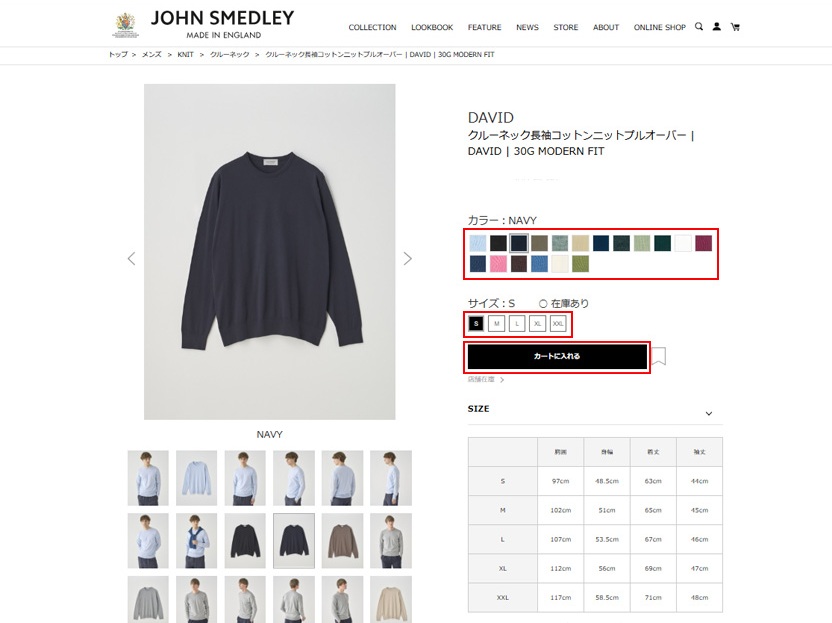 ご購入する際は、ご希望のカラー・サイズを選択し、「カートに入れる」ボタンを押してください。