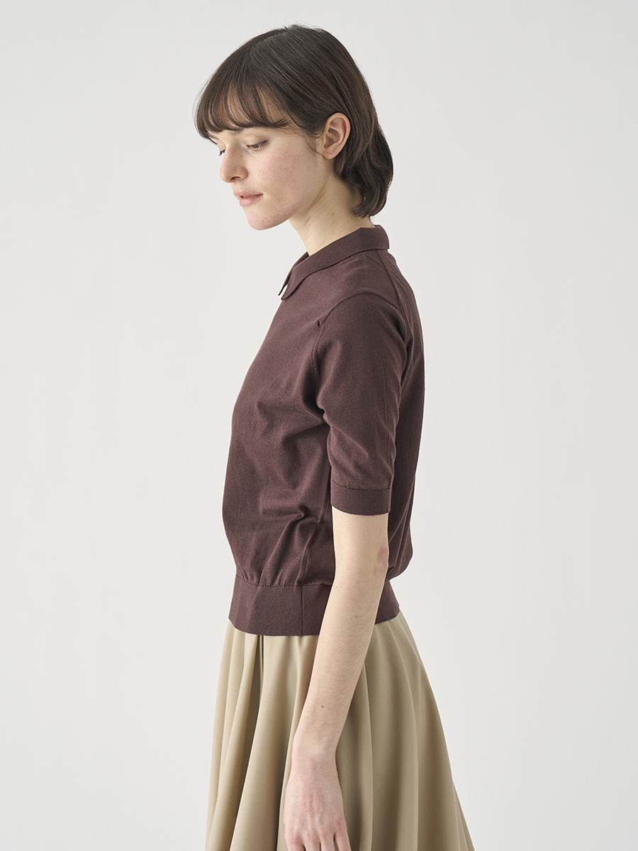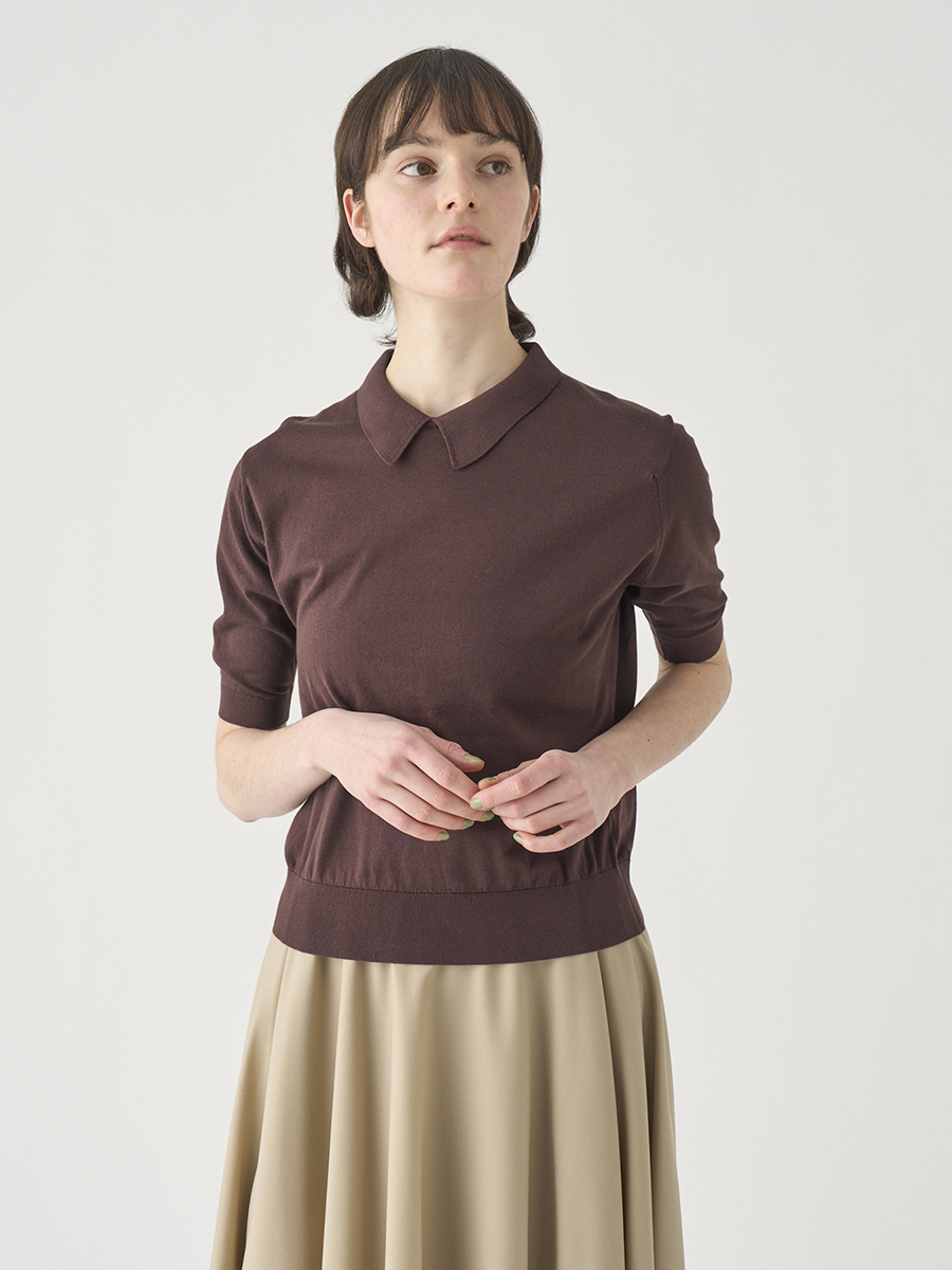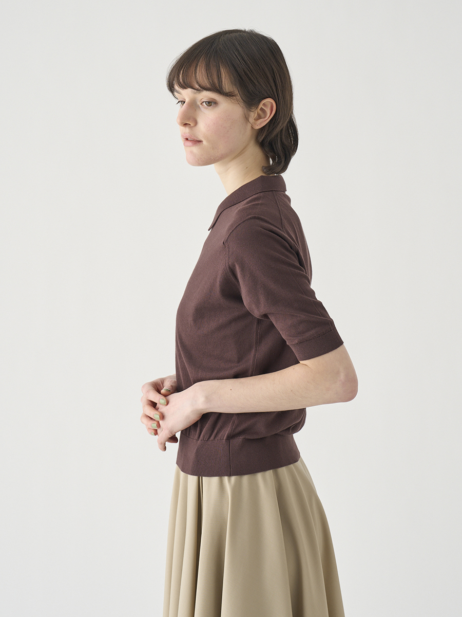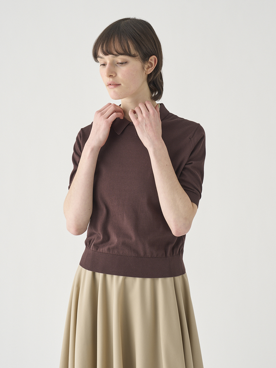コンパクトな襟とボタンレスのミニマルなニットポロシャツ。