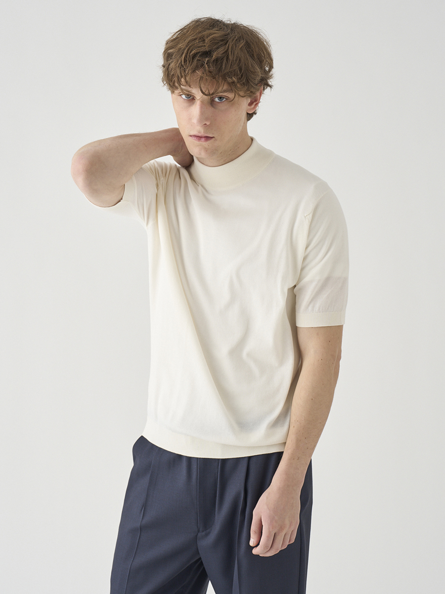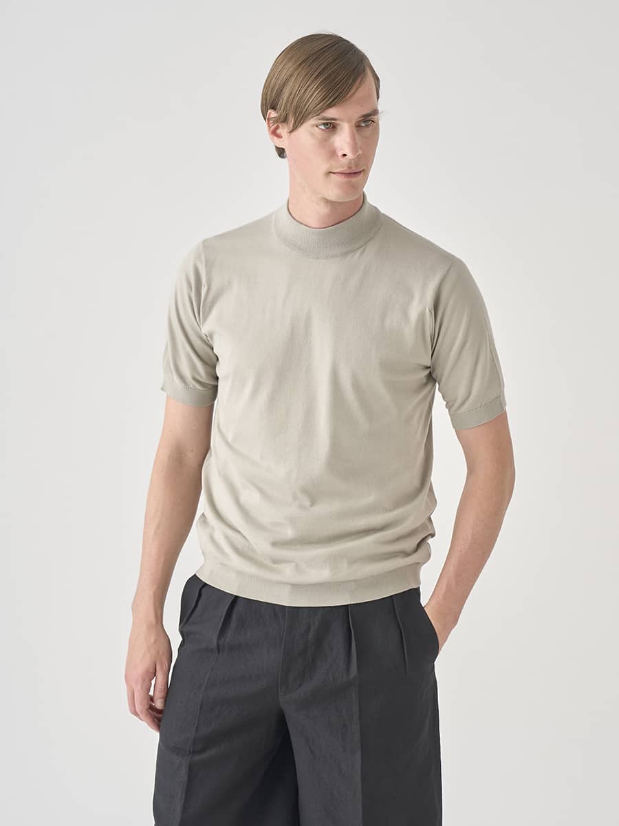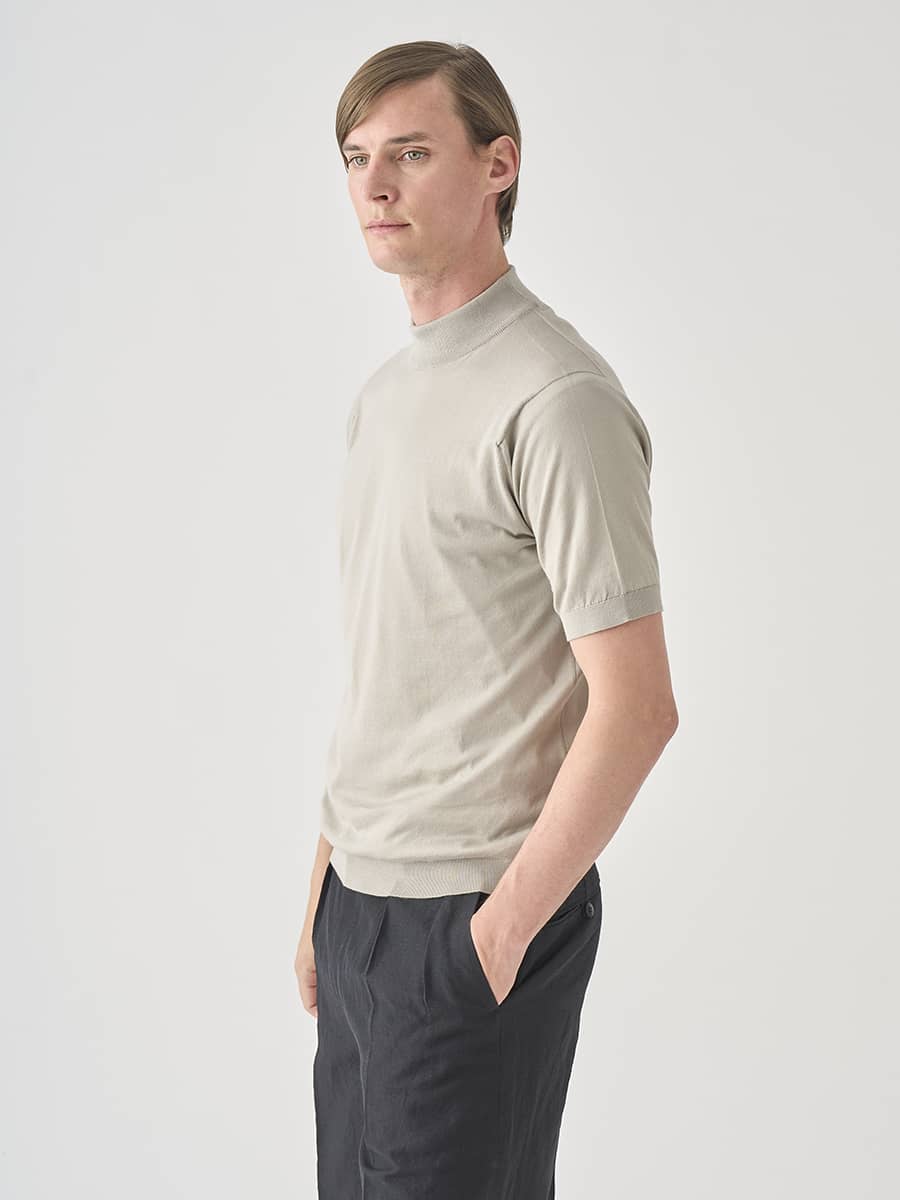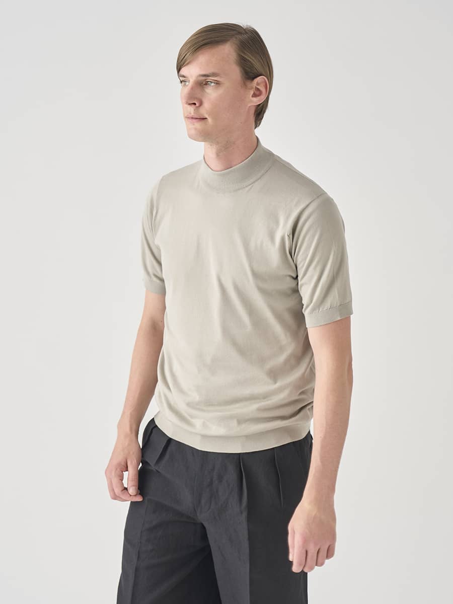モックネック半袖コットンニットTシャツ | ARBER | 30G MODERN FIT