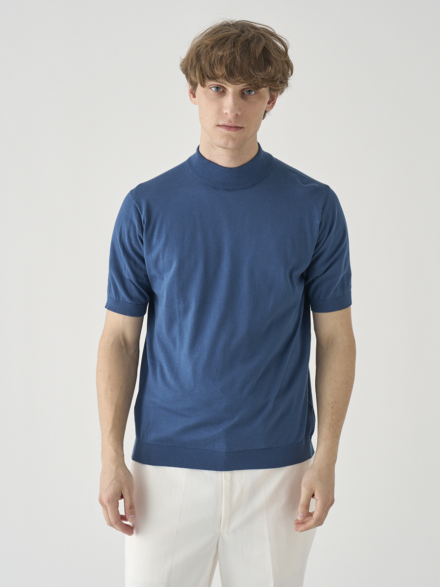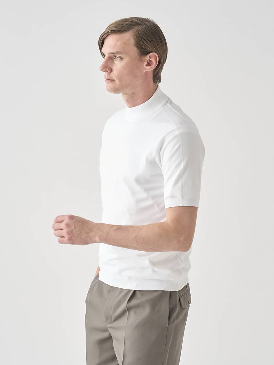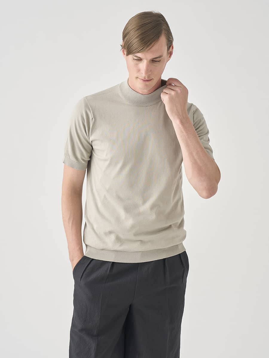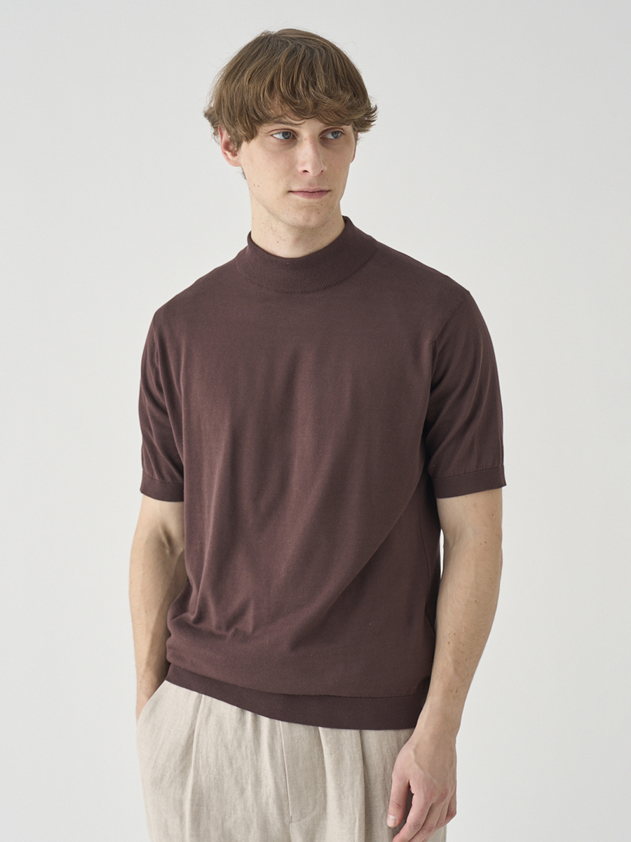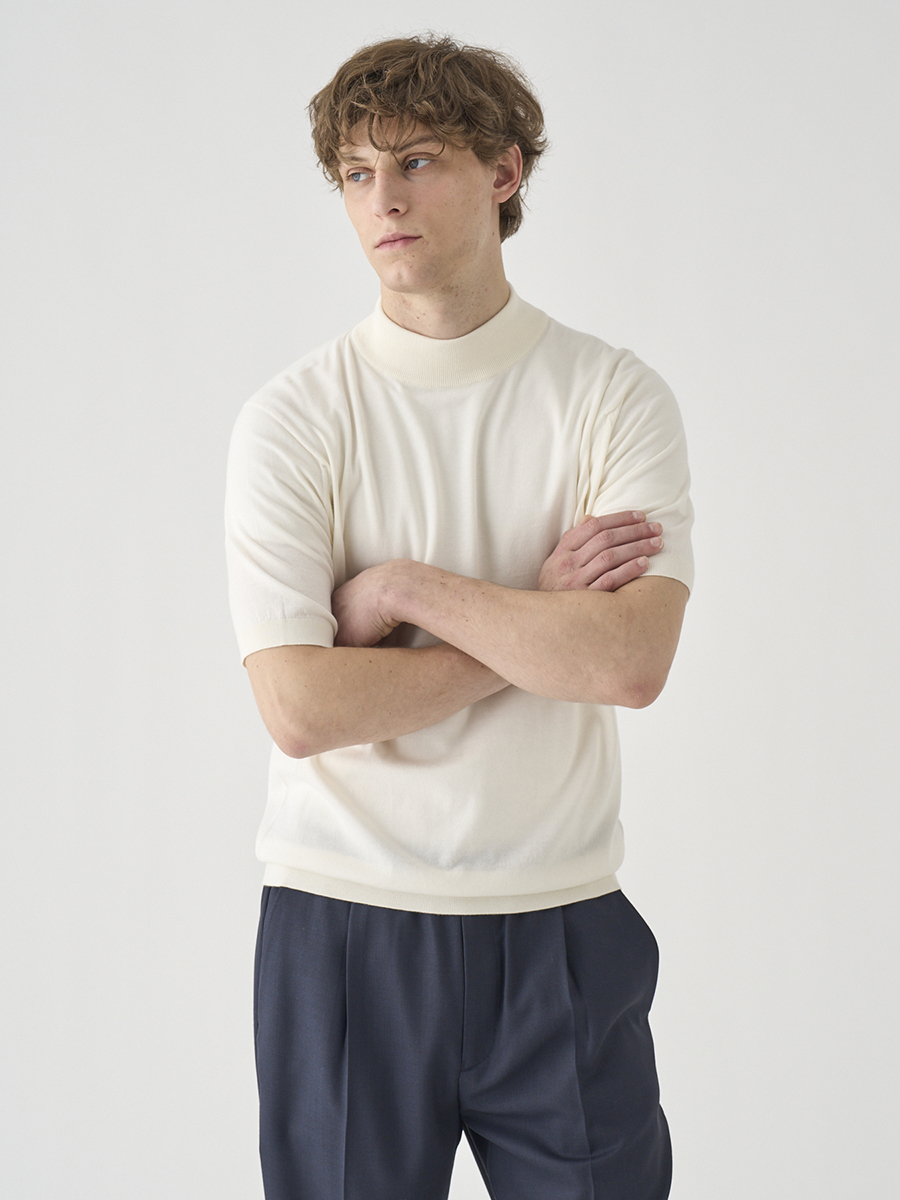 モックネック半袖コットンニットTシャツ | ARBER | 30G MODERN FIT