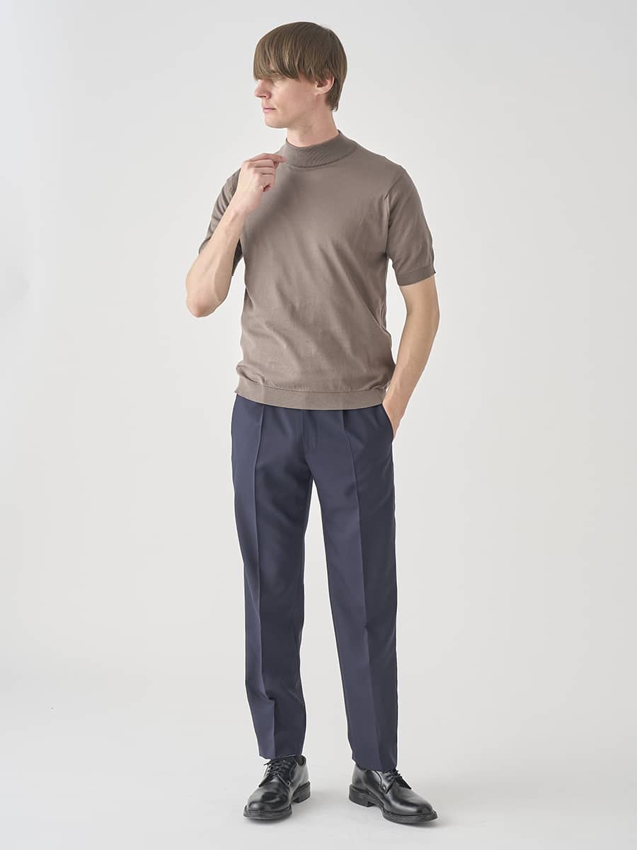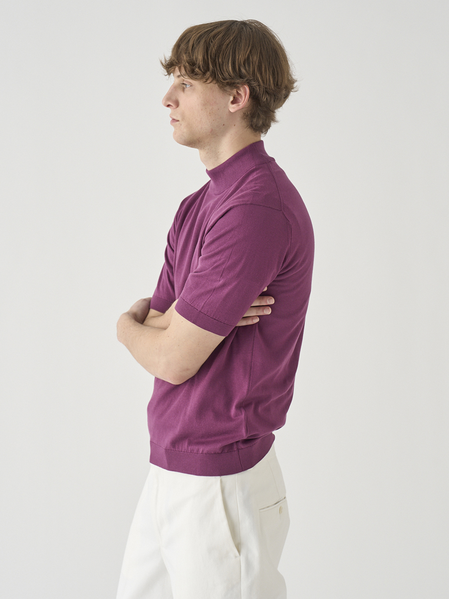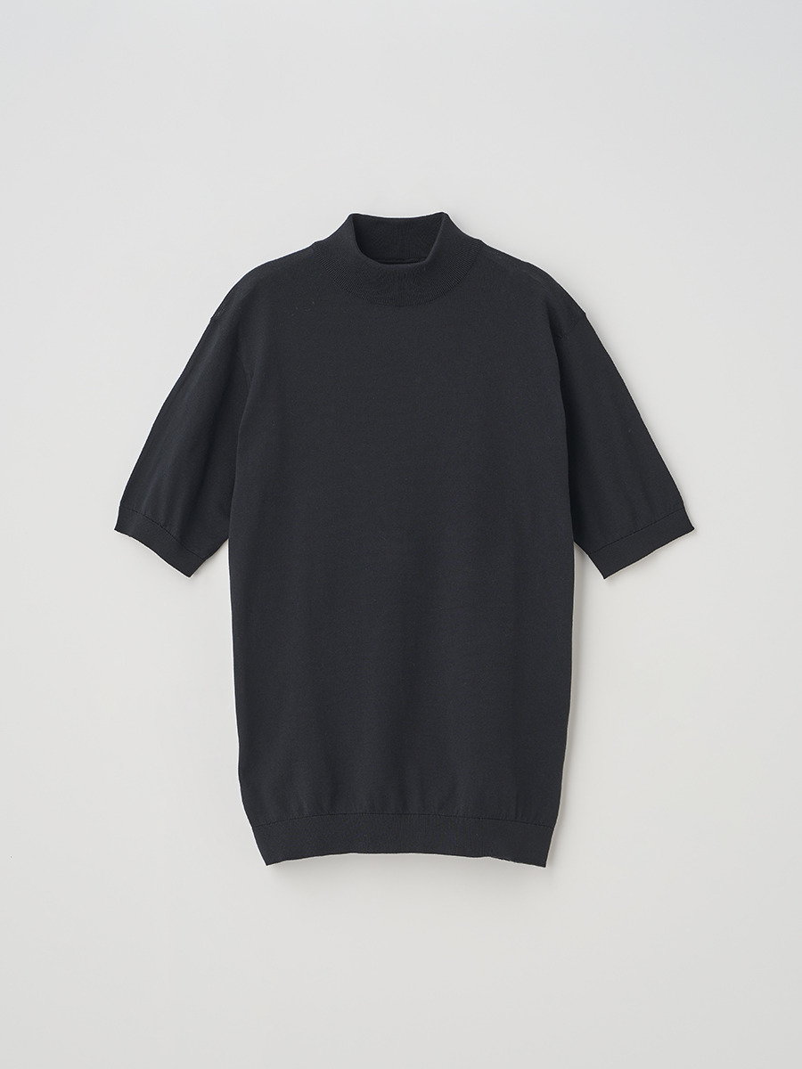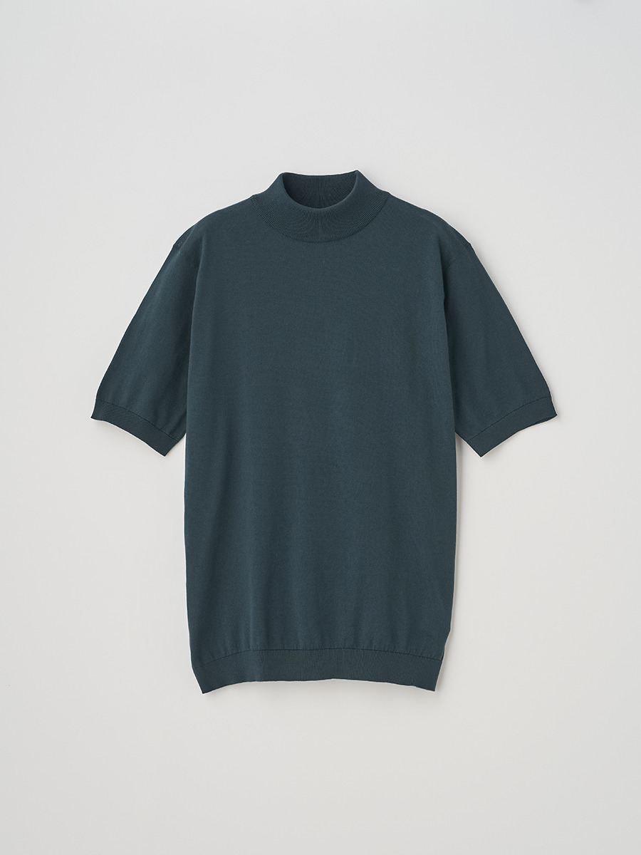 モックネック半袖コットンニットTシャツ | ARBER | 30G MODERN FIT