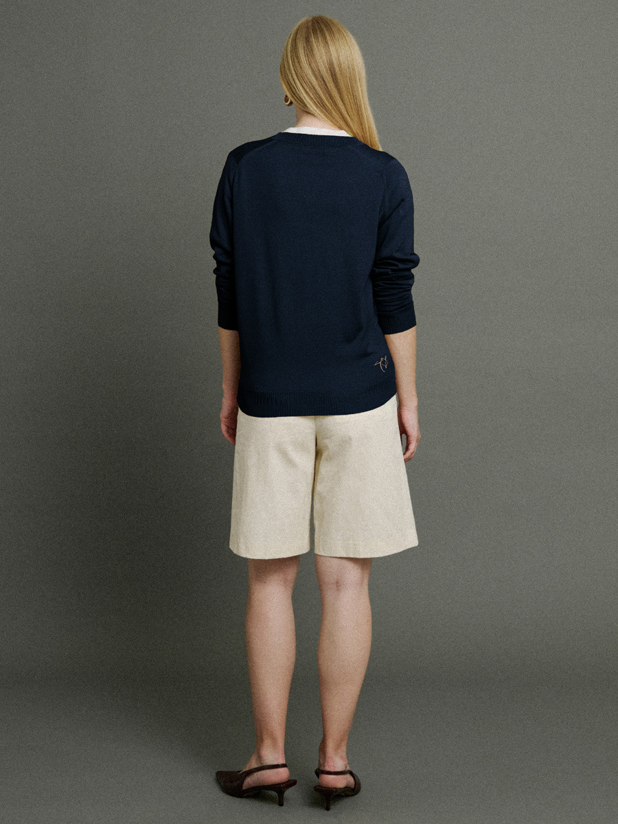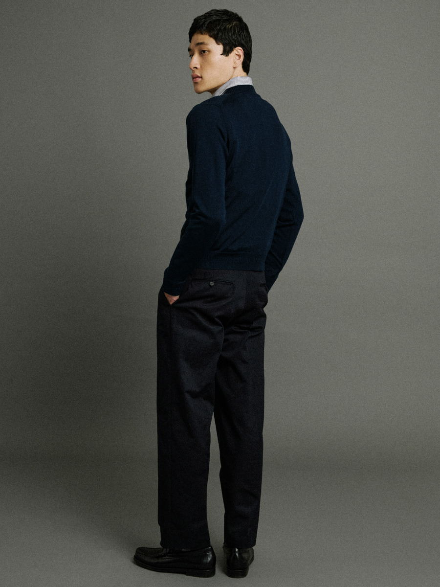 彼の父親のスタイルである1940年代をイメージし、現代的にアップデート。短めのボックスシルエットのデザインは、伝統的なシャツとの重ね着にも美しく映え、太めのリブのネックラインはレイヤリングのアクセントとしても最適です。ブランドを代表するロングジョンとも完璧に調和し、ベースレイヤーとして着用できるほど上質な仕上がりです。