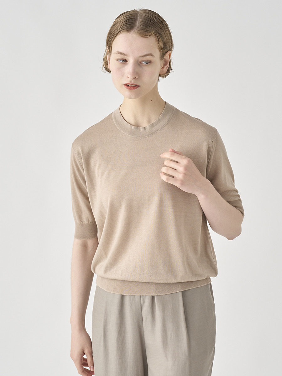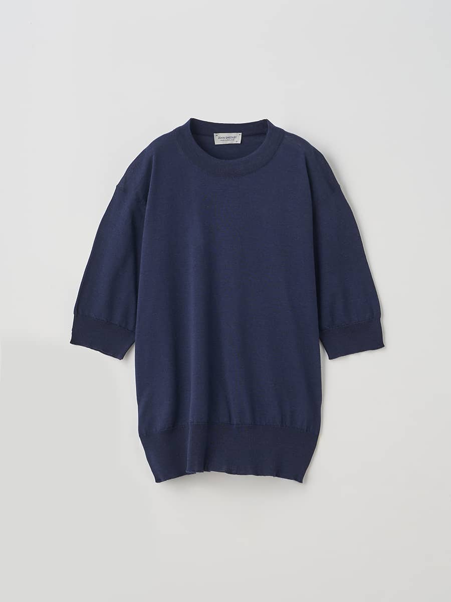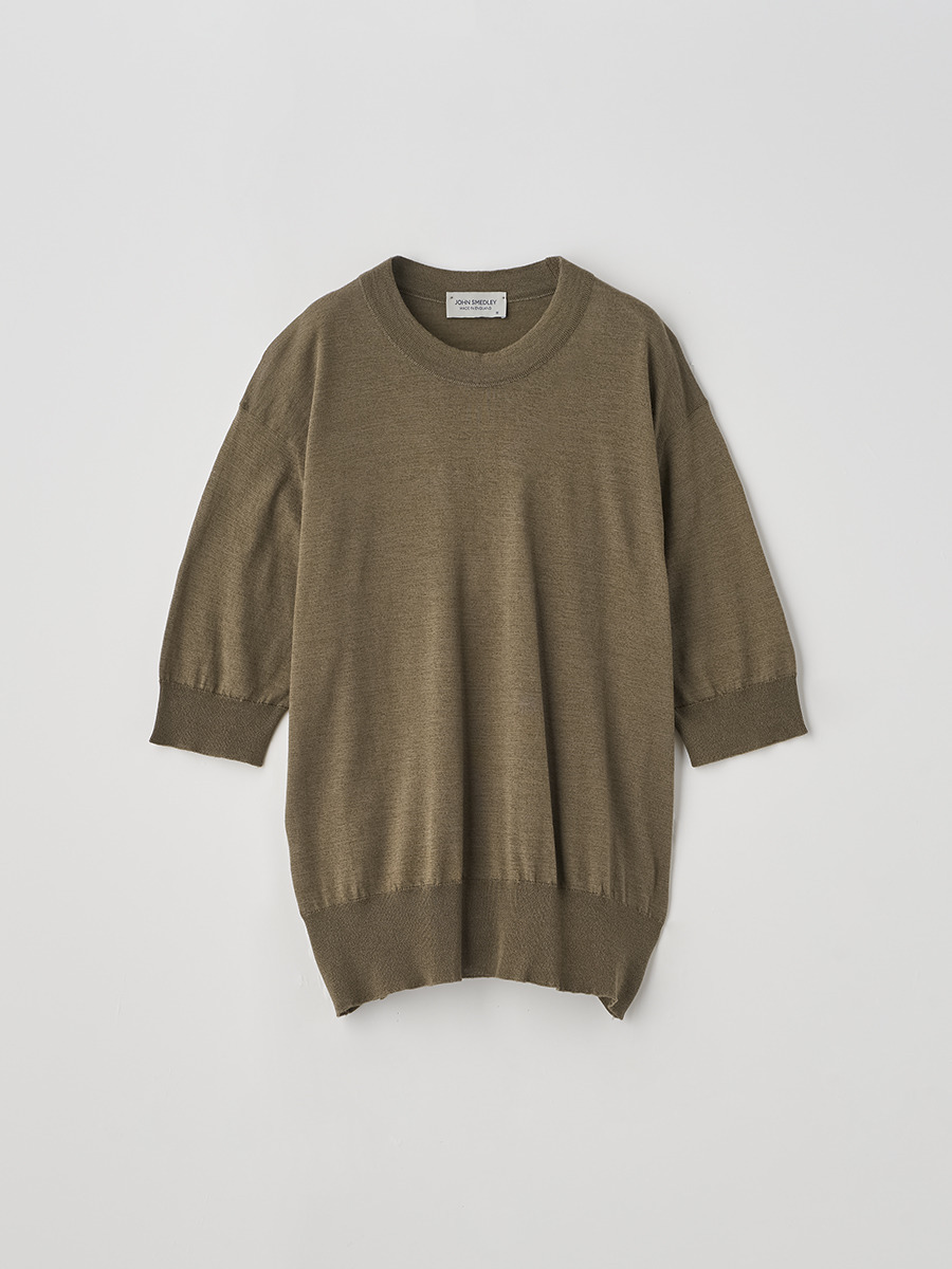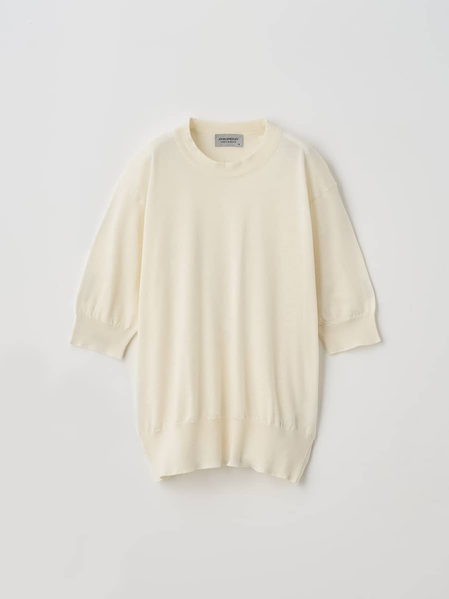 JOHN SMEDLEY'S ANGLO INDIAN GAUZE(AIG)を使用した半袖ニットプルオーバー。