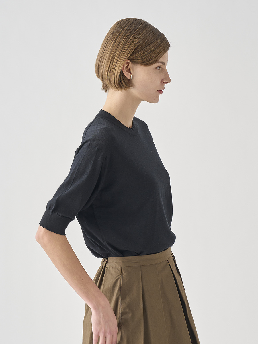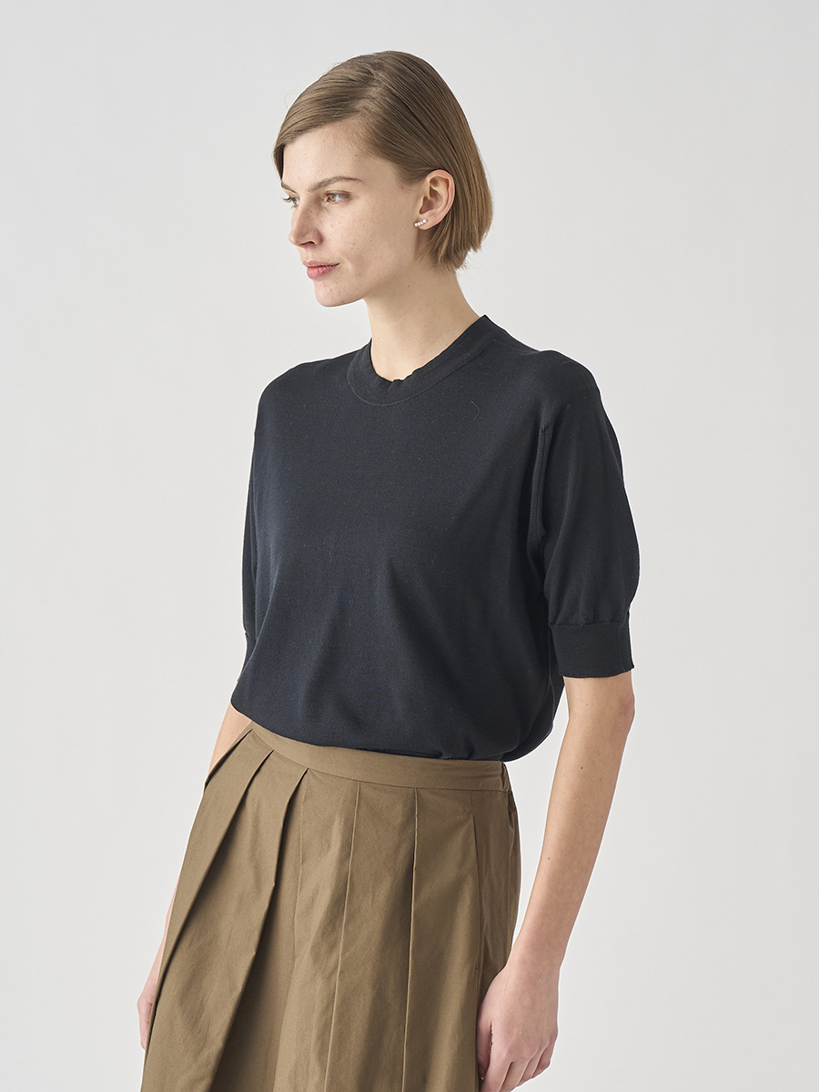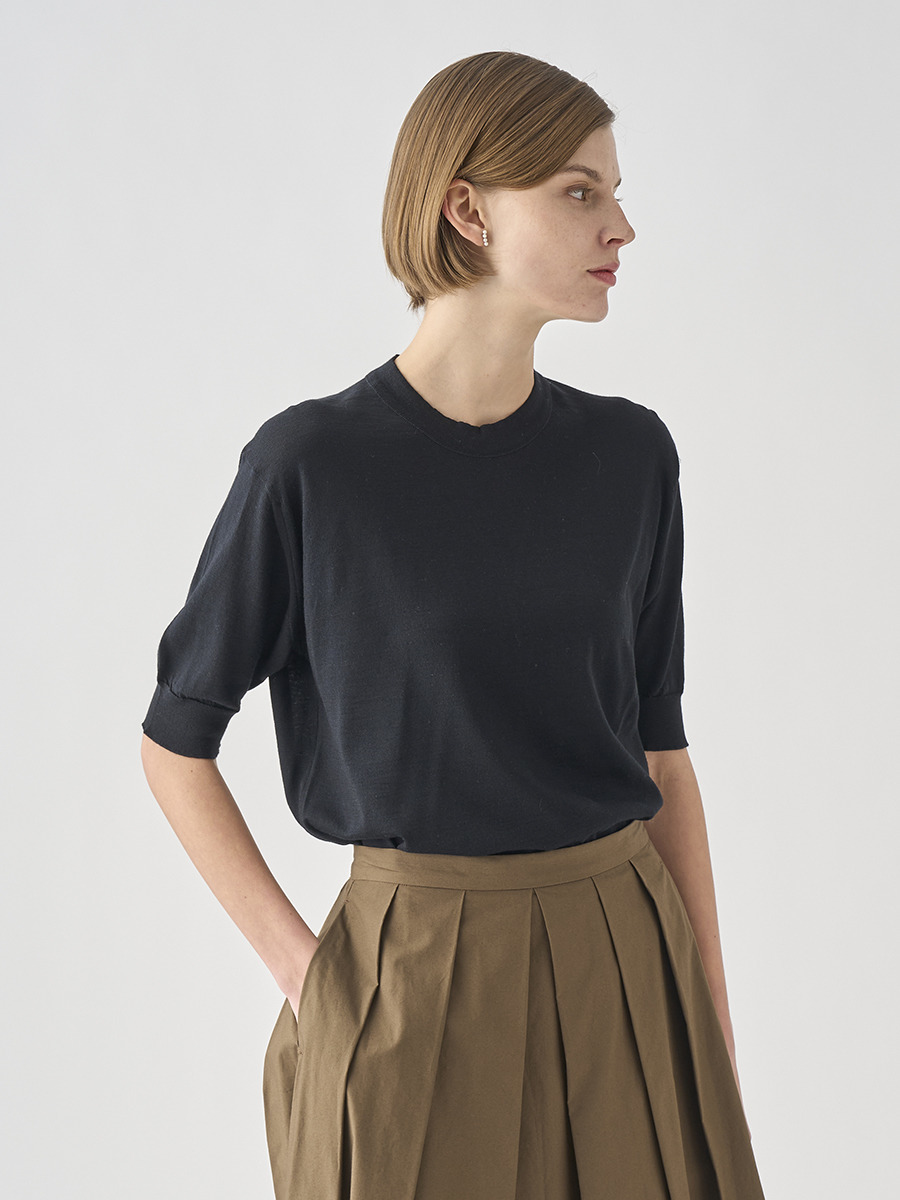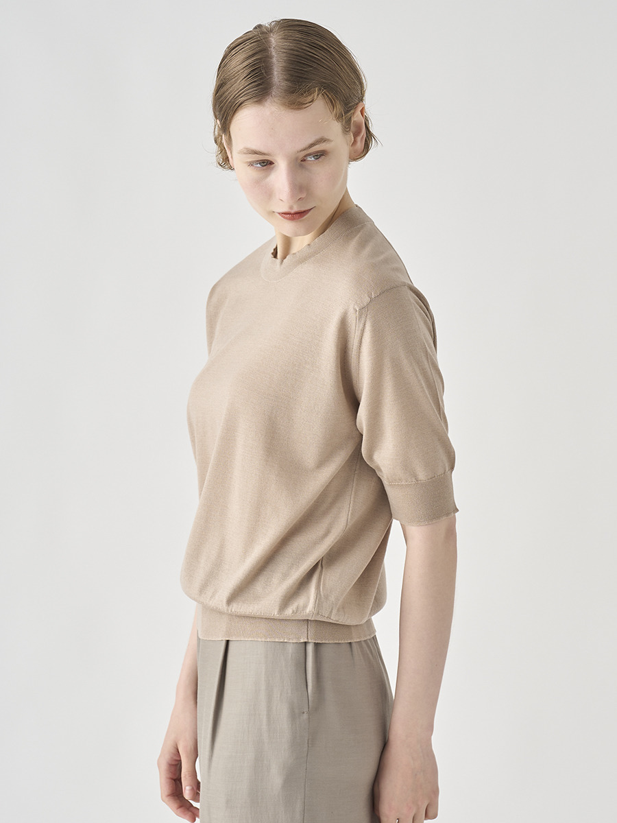 JOHN SMEDLEY'S ANGLO INDIAN GAUZE(AIG)を使用した半袖ニットプルオーバー。