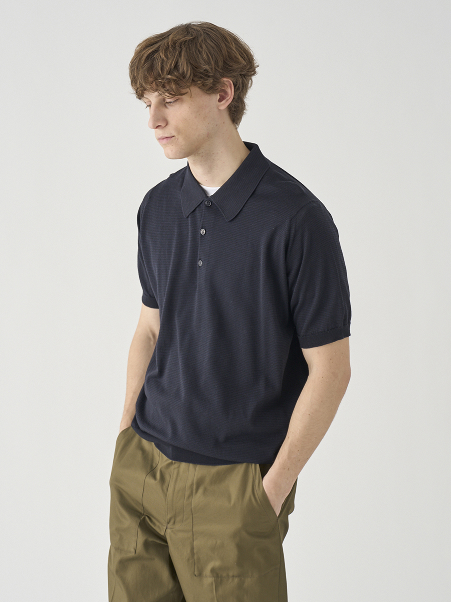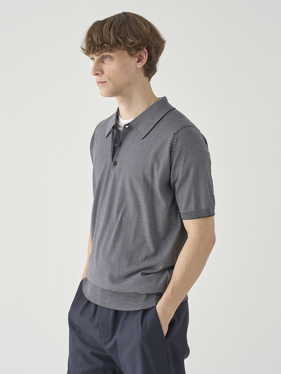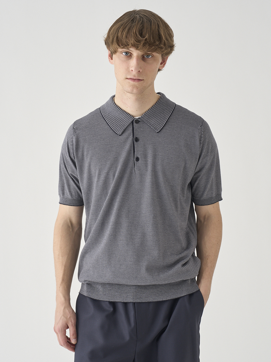 1. [Anglo Indian Gauze]マイクロボーダーニットポロシャツ | ELVINS | 30G EASY FIT