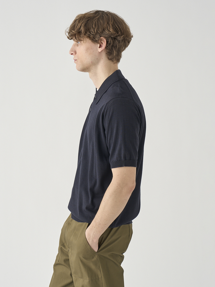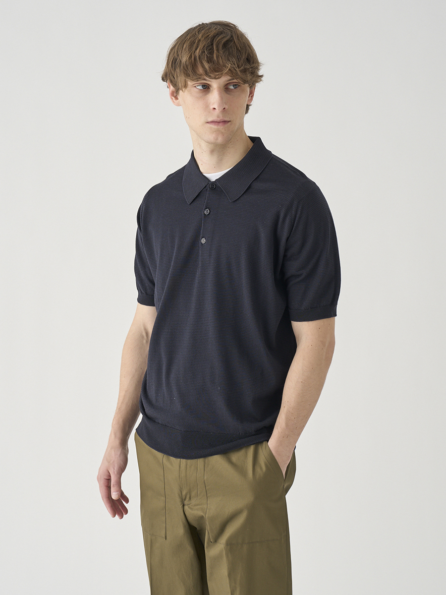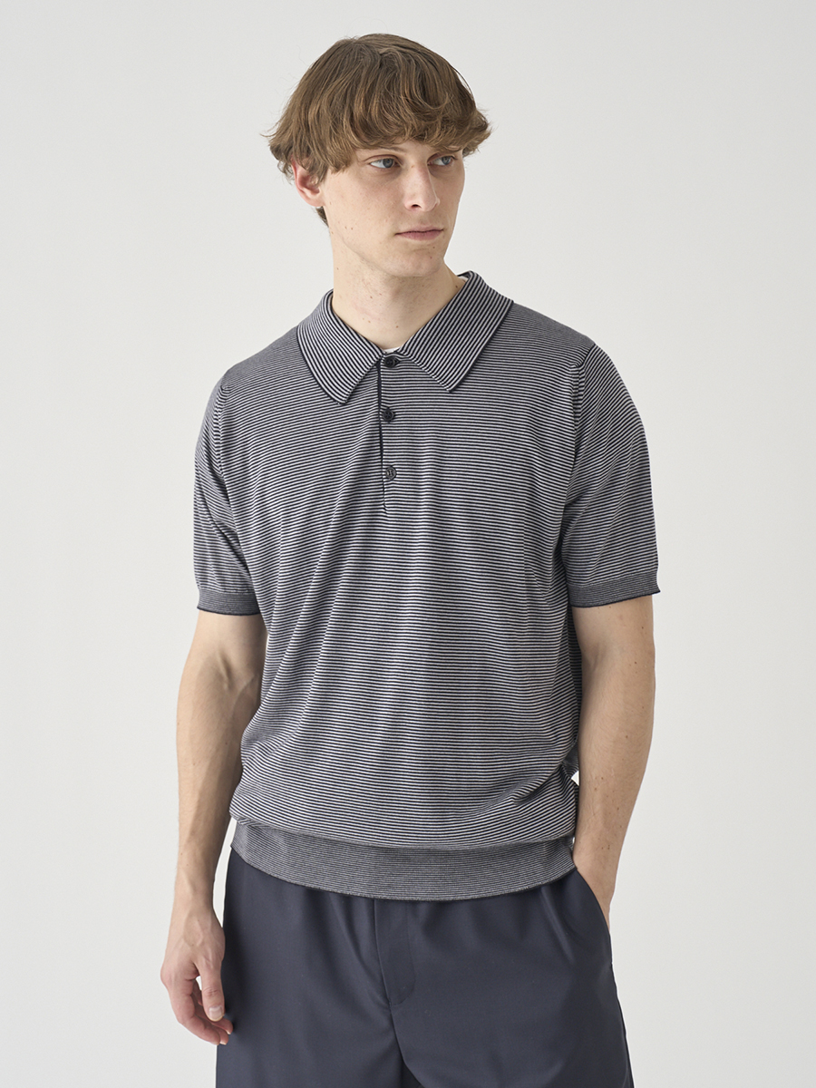 1. [Anglo Indian Gauze]マイクロボーダーニットポロシャツ | ELVINS | 30G EASY FIT