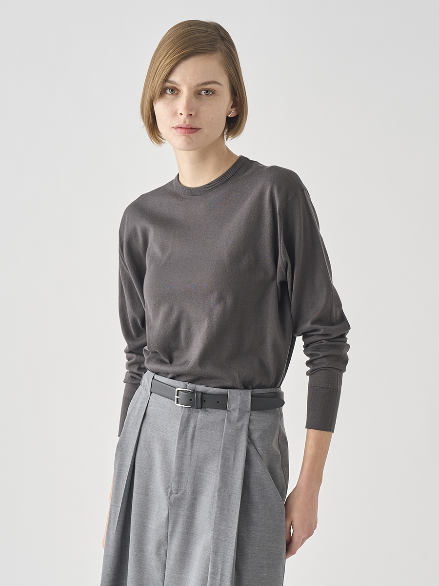 クルーネック長袖コットンニットプルオーバー | EMMA | 30G COMMON FIT