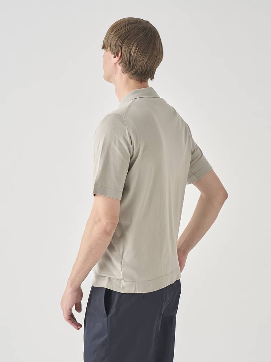 ボタンを留めたポロシャツのような着こなしはもちろん、ボタンを開けてカットソーなどに羽織るスタイルもおすすめです。