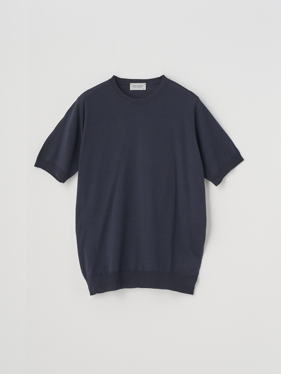 JOHN SMEDLEY’S ANGLO INDIAN GAUZE(AIG)を使用したニットTシャツ。袖口と裾にはリブをあしらい、程よくフィットするデザインですが、AIG特有の柔らかい風合いと肌当たりの良さは抜群。