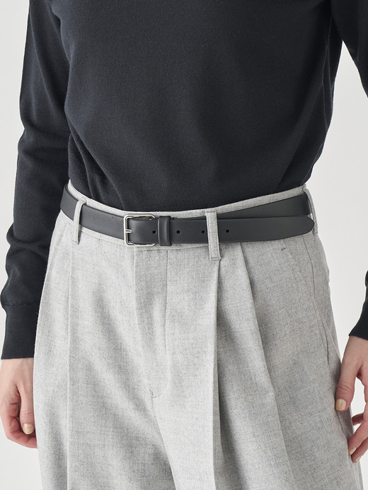 JOHN SMEDLEYのアイテムと相性の良い、シンプルで時代に流されない洗練されたデザインのレザーベルト。