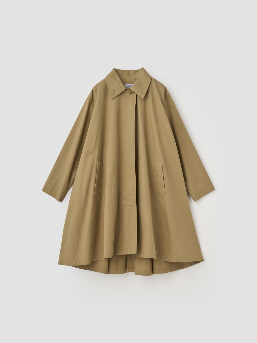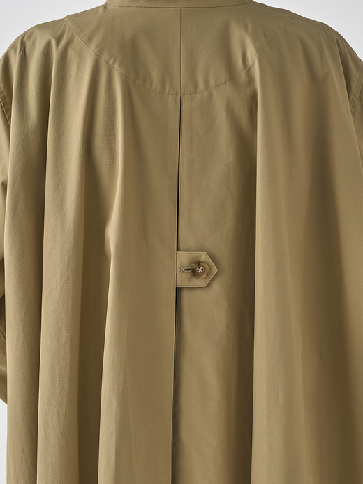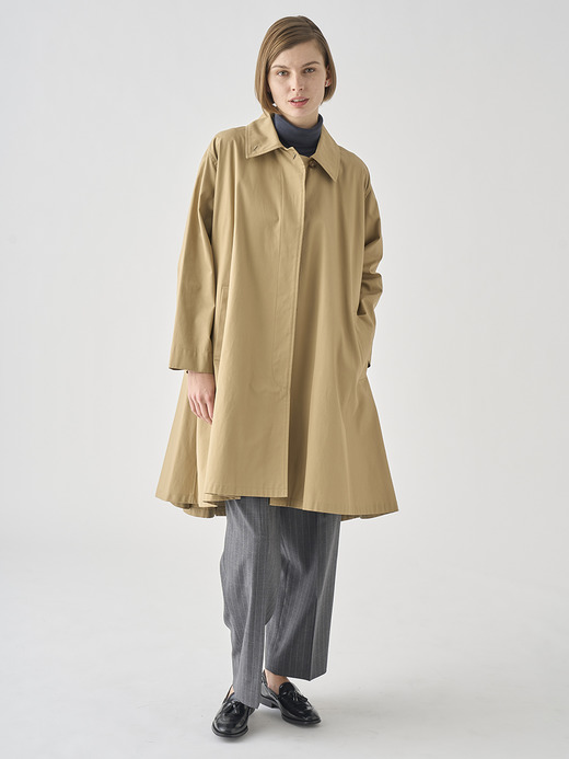 春や秋に活躍するシンプルでクリーンなステンカラーコート。背中のプリーツで豊かなボリュームを持たせ、サイドコンシャスなシルエットに。衿のボタンのパーツで、衿を立てても着ることができます。