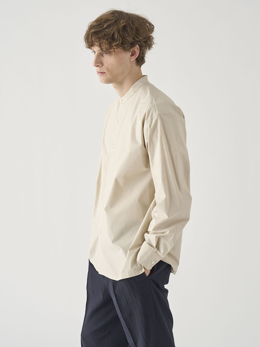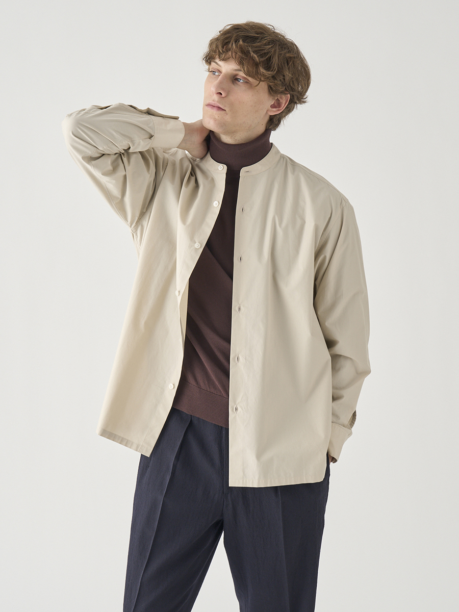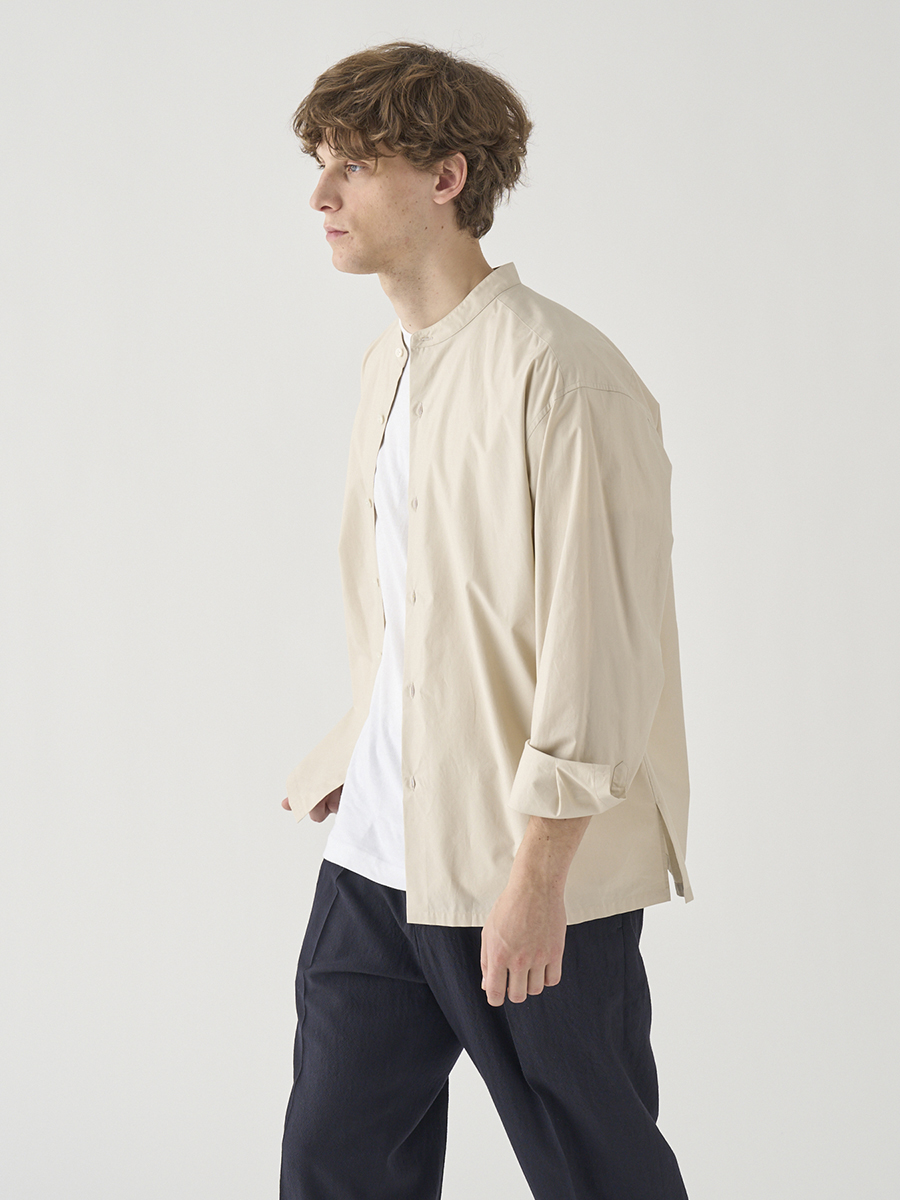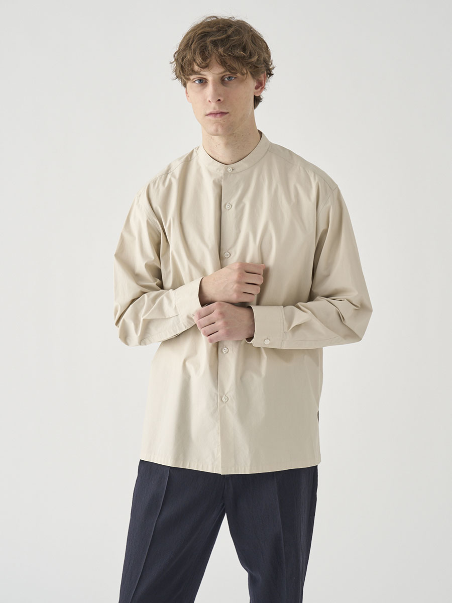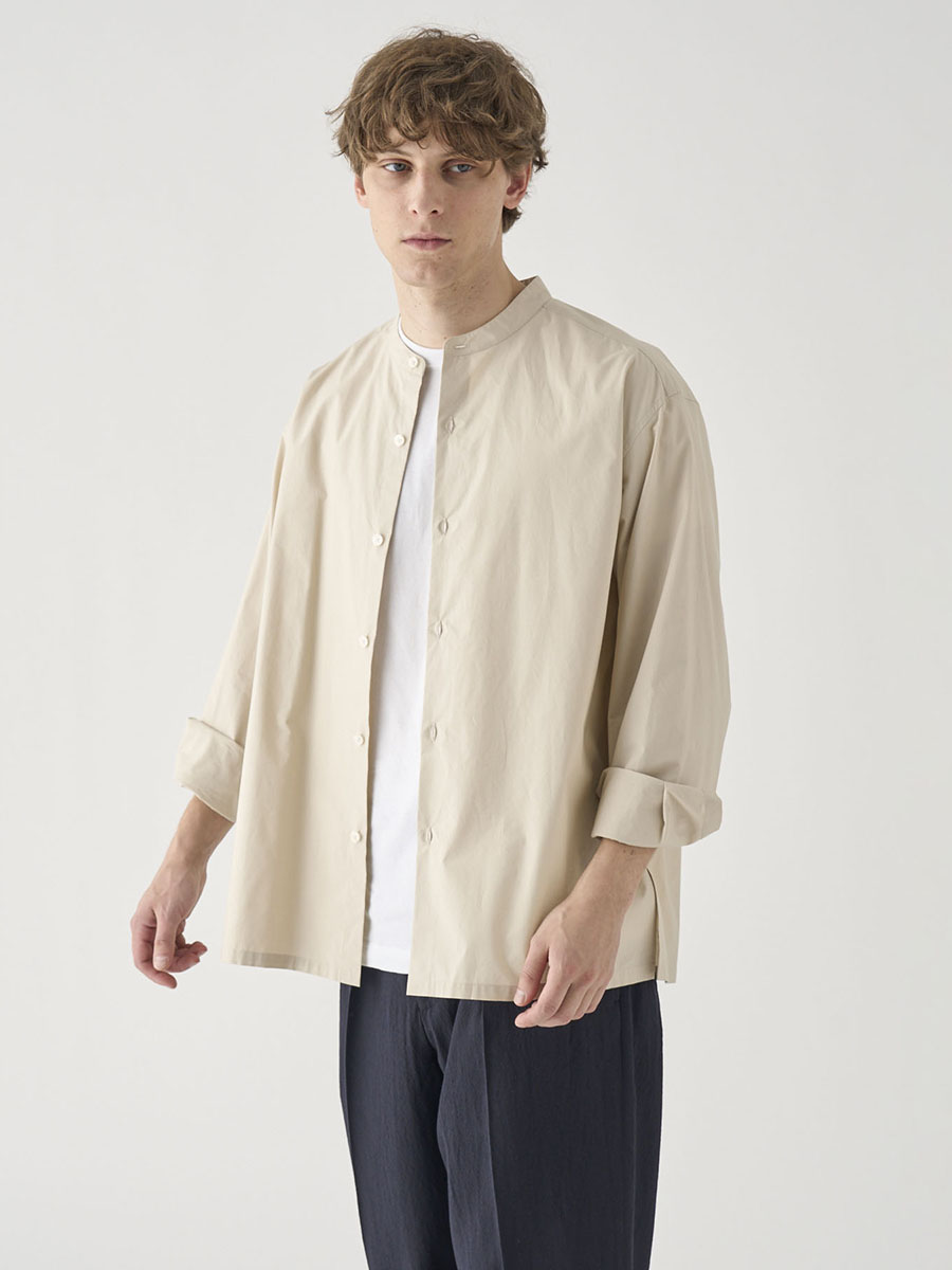 コットンシルク長袖バンドカラーシャツ |FB258