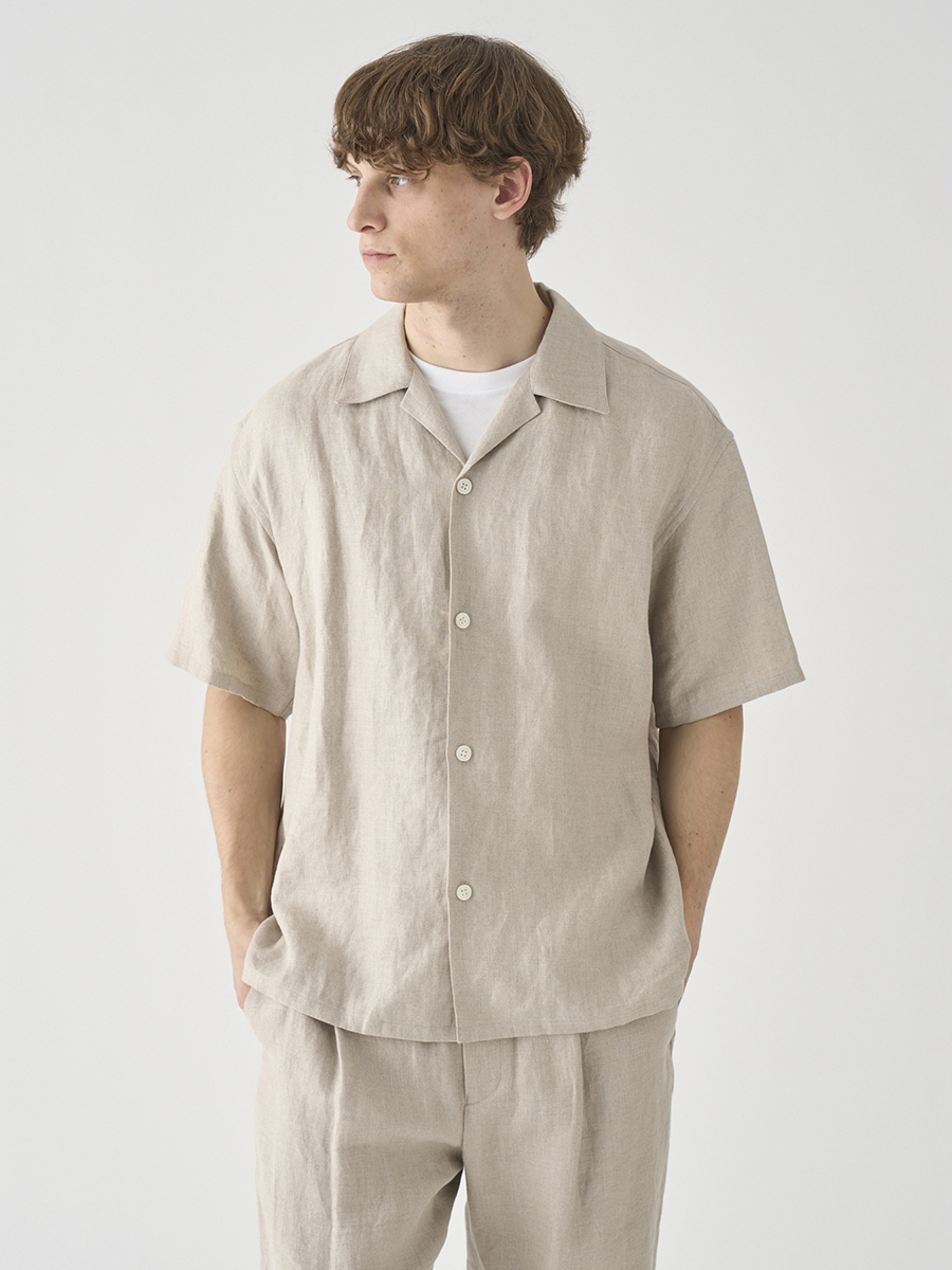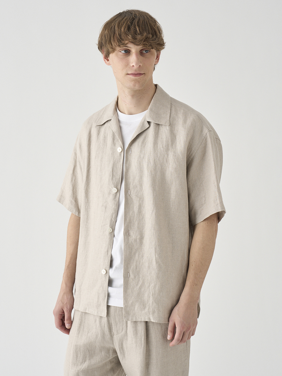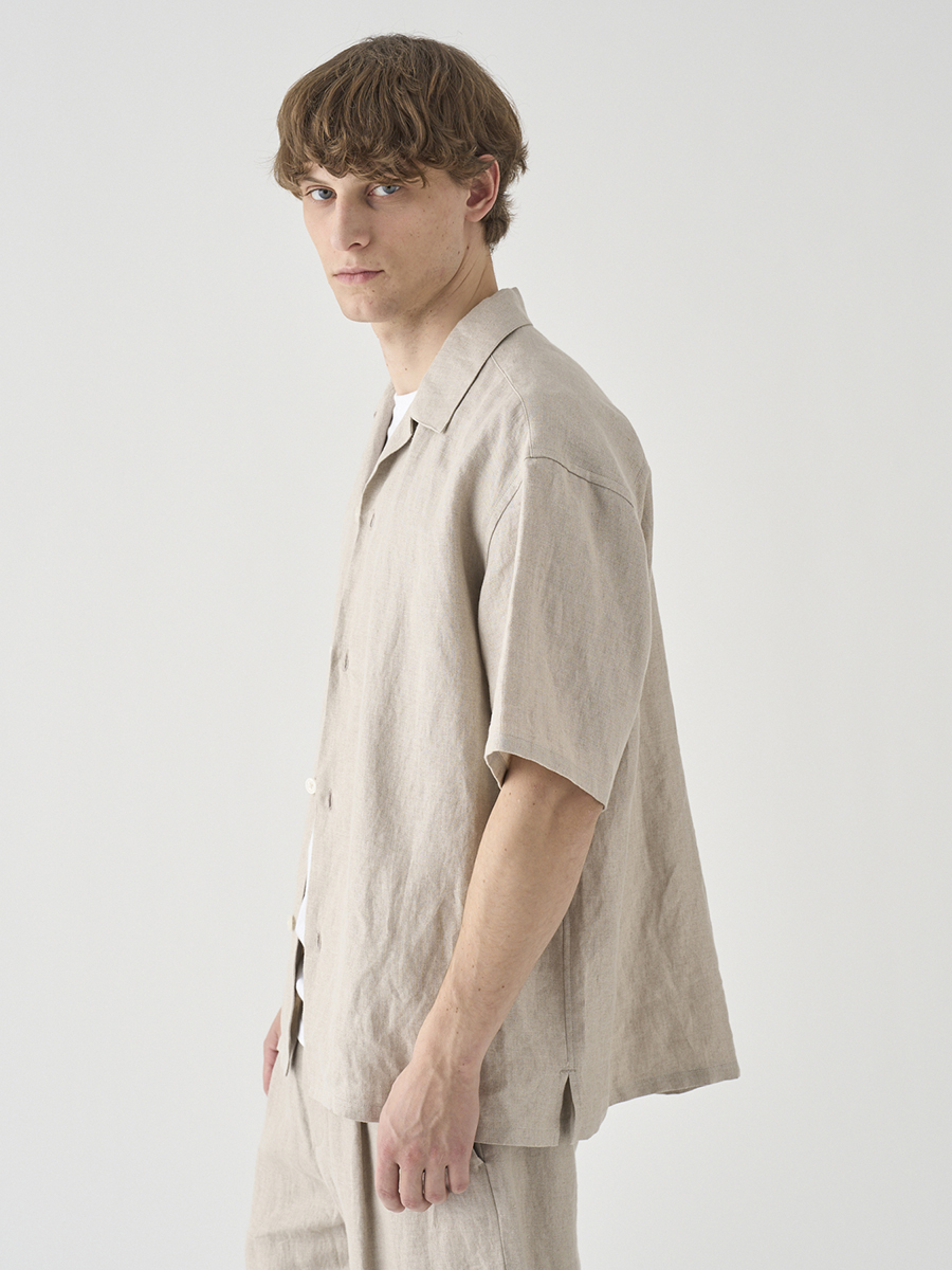 定番の半袖シャツのサイズ感をベースに、衿型をオープンカラー(開襟)にアレンジしたリラックスシャツ。