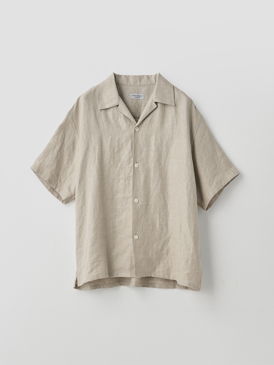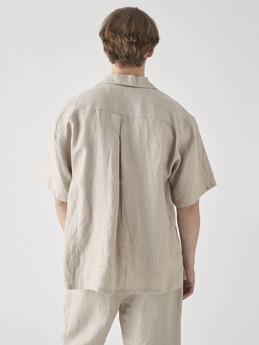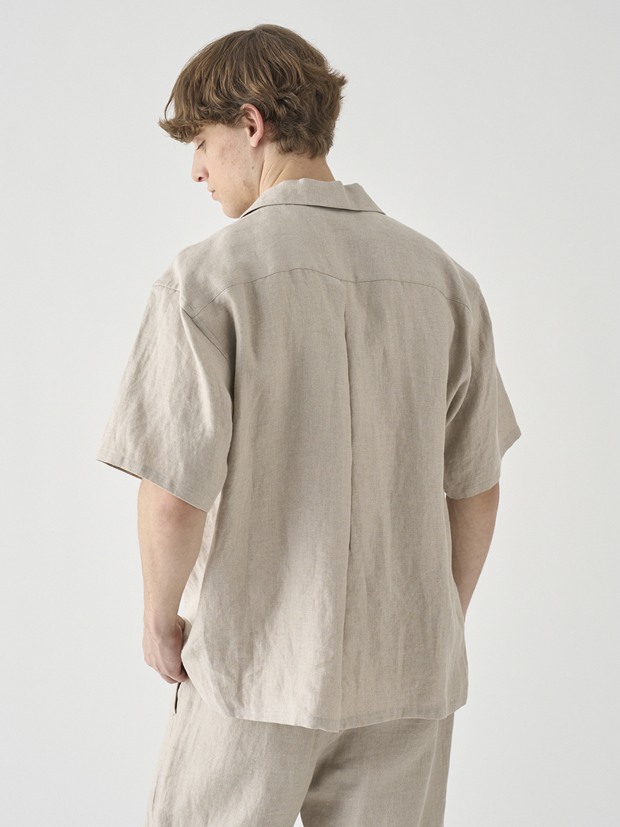定番の半袖シャツのサイズ感をベースに、衿型をオープンカラー(開襟)にアレンジしたリラックスシャツ。