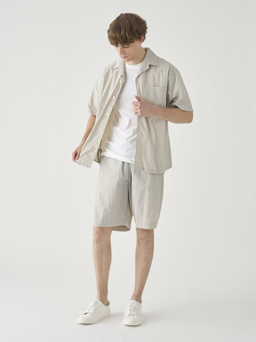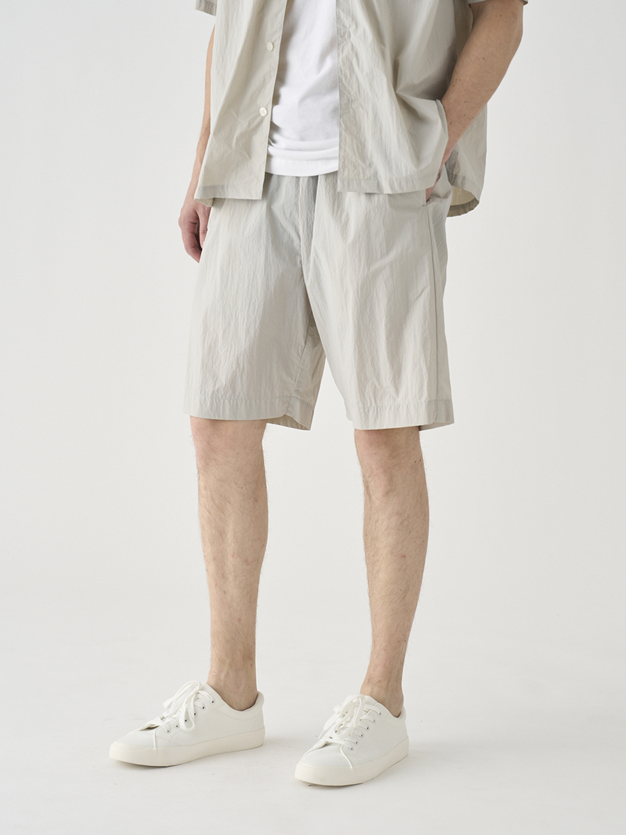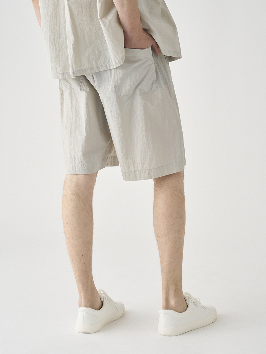 British Army Over Trousers 1/2をイメージソースに、イージーパンツ仕様にブラッシュアップしたショーツ。驚くほど軽量で風通しのいいナイロン素材に、腰回りにゆとりを持たせた絶妙なシルエットで、上品な大人のリゾートスタイルにマッチするショートパンツに仕上げました。