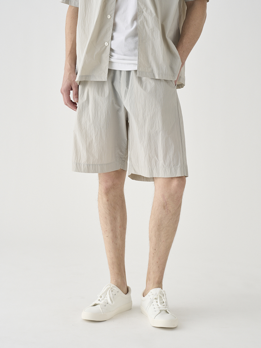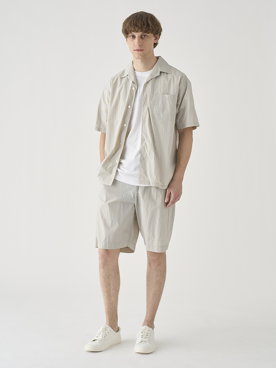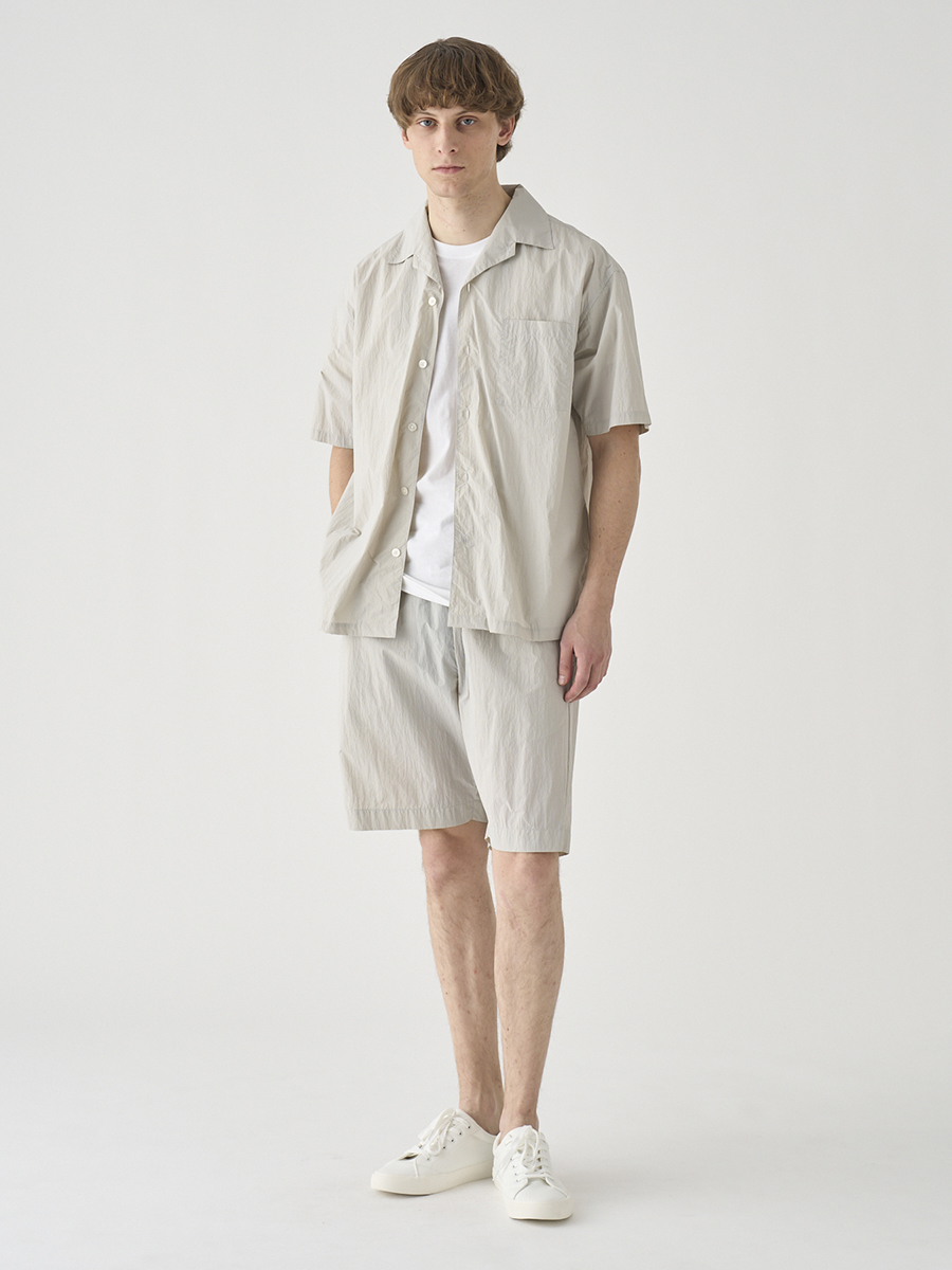 British Army Over Trousers 1/2をイメージソースに、イージーパンツ仕様にブラッシュアップしたショーツ。驚くほど軽量で風通しのいいナイロン素材に、腰回りにゆとりを持たせた絶妙なシルエットで、上品な大人のリゾートスタイルにマッチするショートパンツに仕上げました。