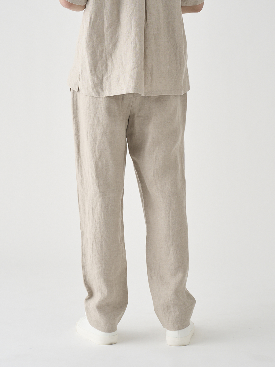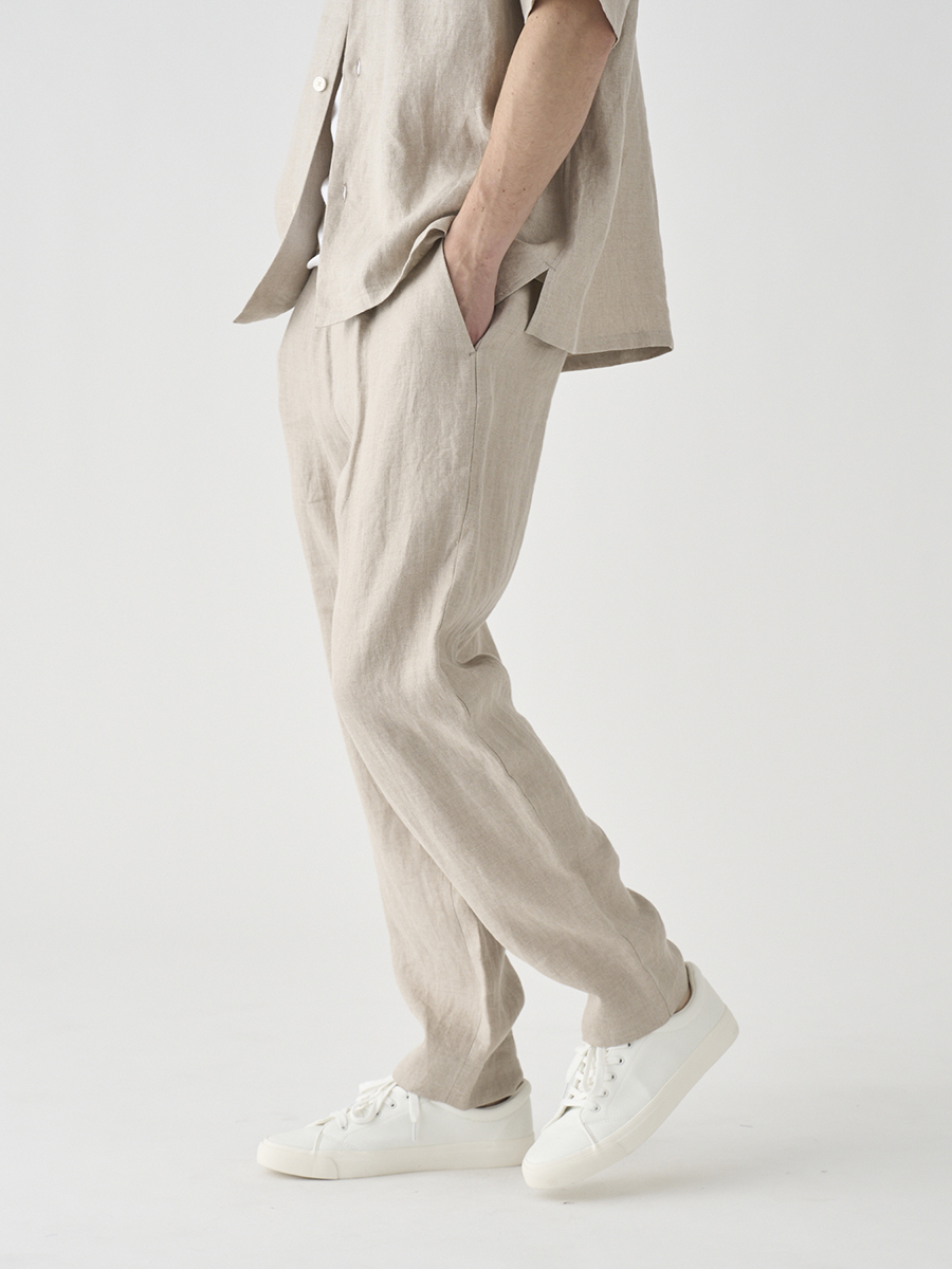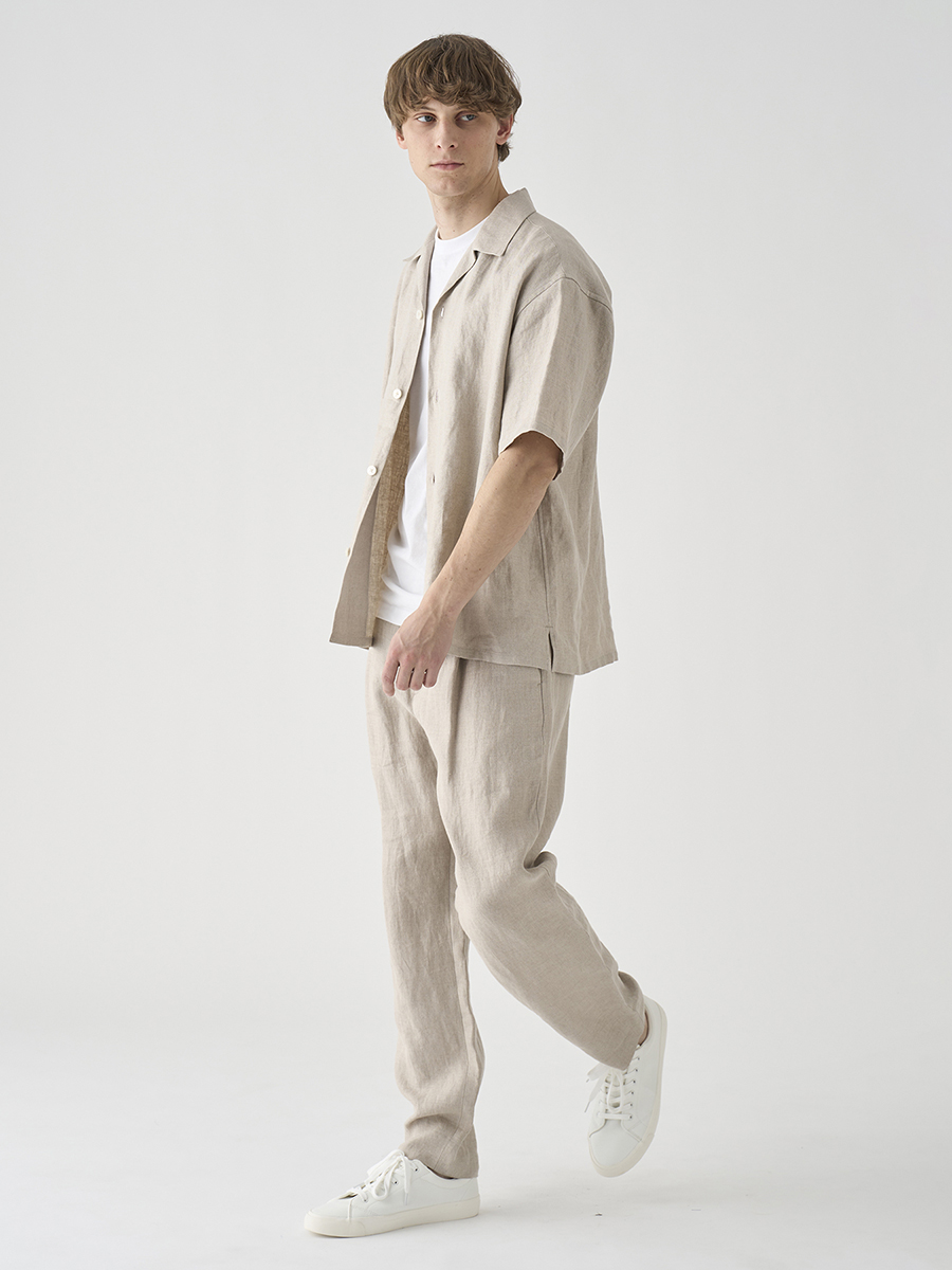 原料にFrench Linenを使用し、織りから加工までを日本国内で行っている「Japan Linen」を採用。C.C Finishという加工を施す事により、繊維を優しく叩きほぐし、ソフトでふっくらとした洗いざらし風の着心地の良い素材に仕上がります。