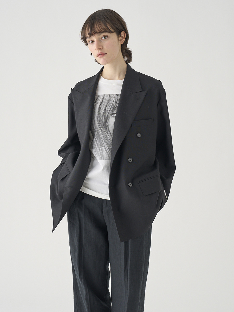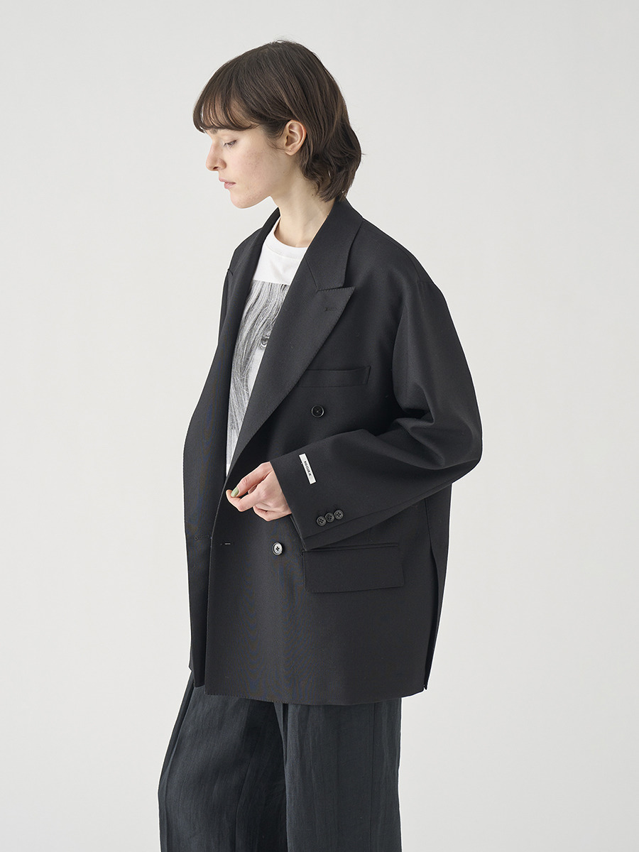 コートのようなサイズ感でありながら、落ち感のある上質なウール生地を使用し、心地よい着用感。小柄な方でもコーディネートしやすく、こなれ感を演出できるジャケットです。