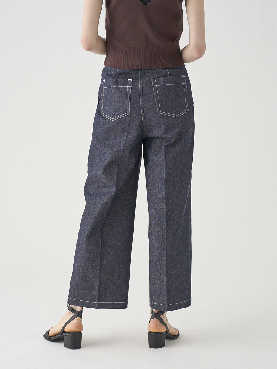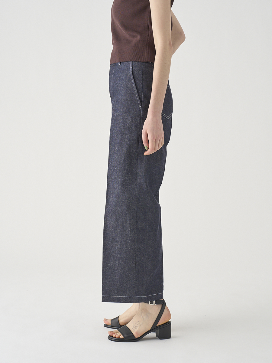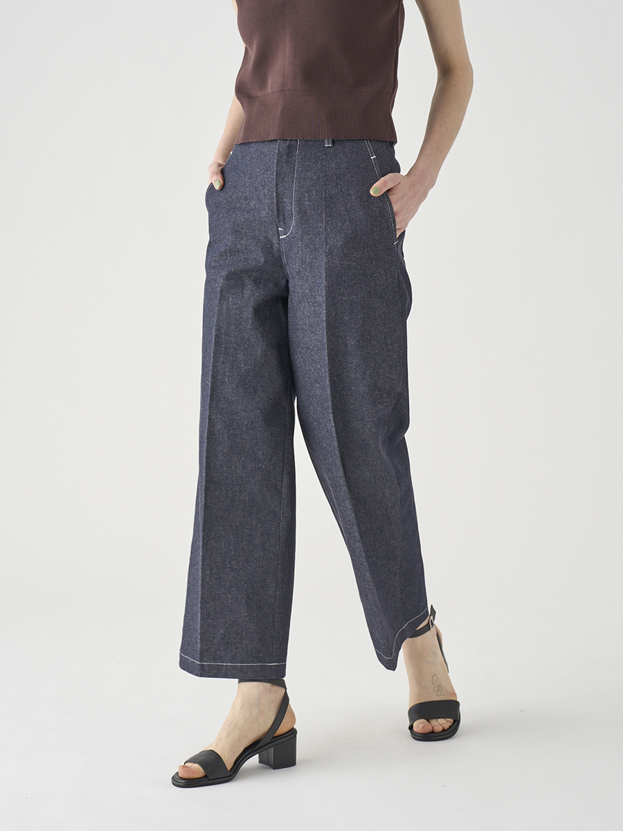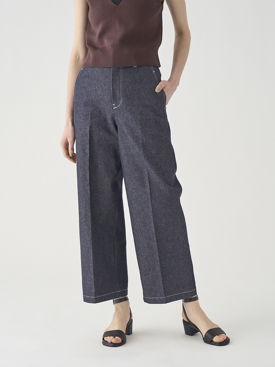 岡山の工場で丁寧に生産されたデニムを使用。デニムならではの素材感を活かしつつ、シルエットやディテールはミニマルに仕上げることで、大人の女性にぴったりの1本に。大人のカジュアルスタイルを上品に格上げします。