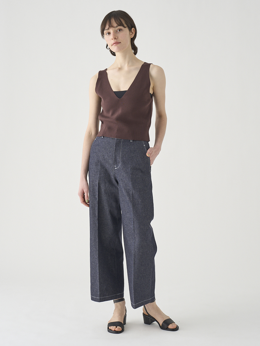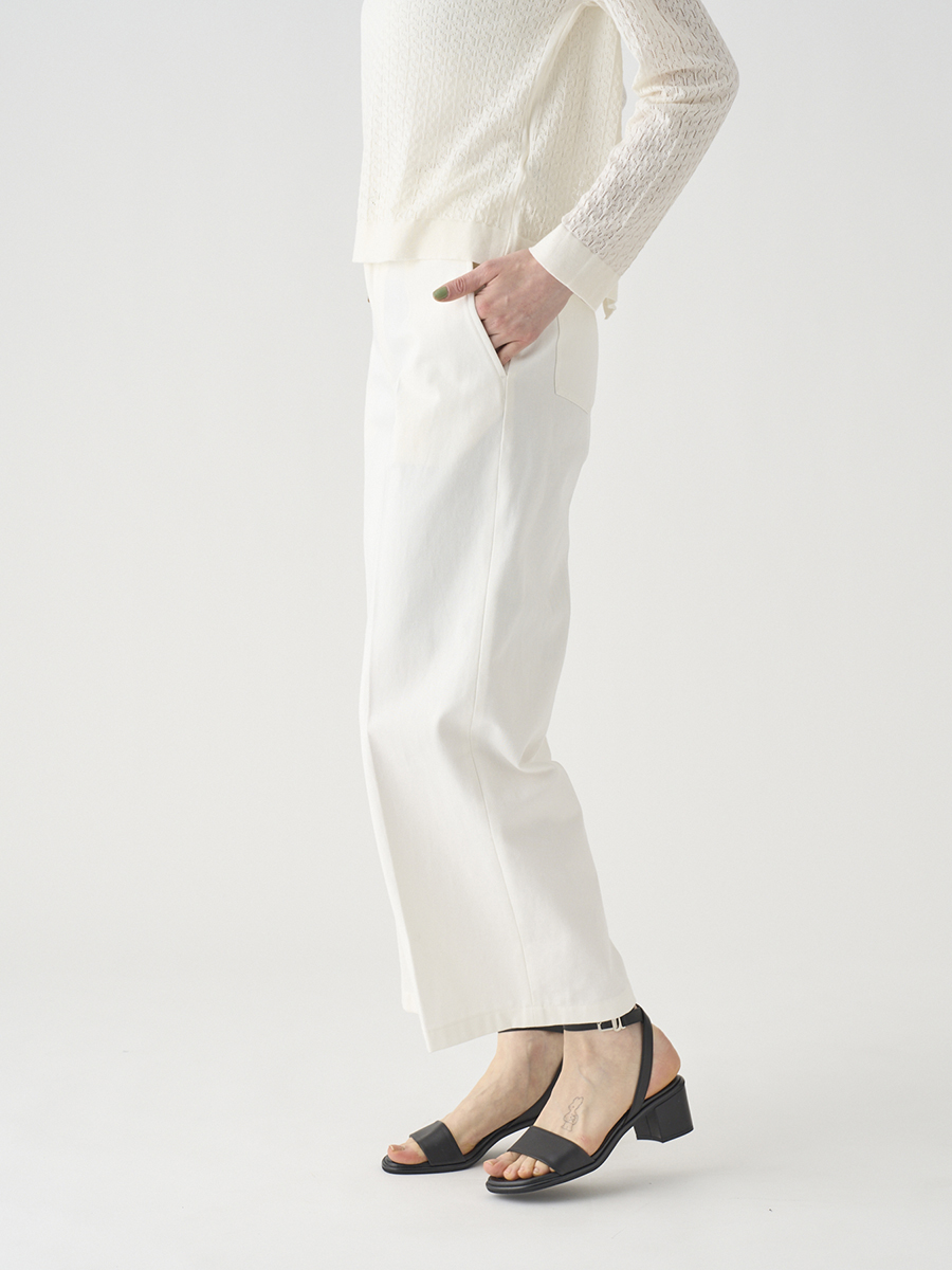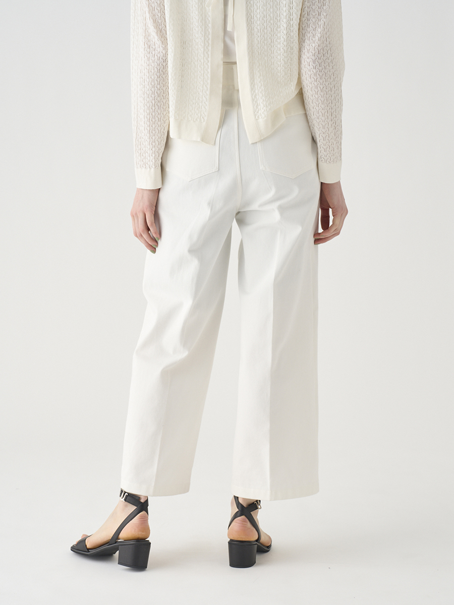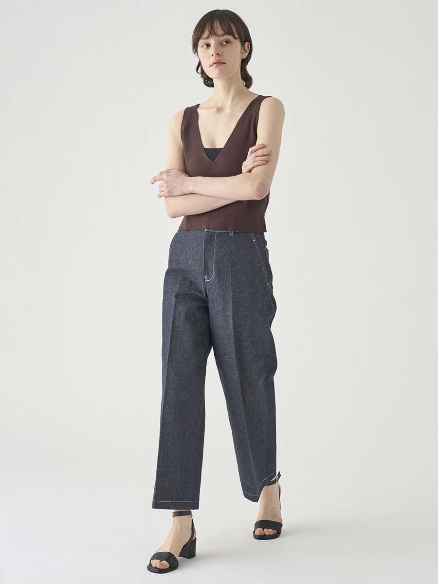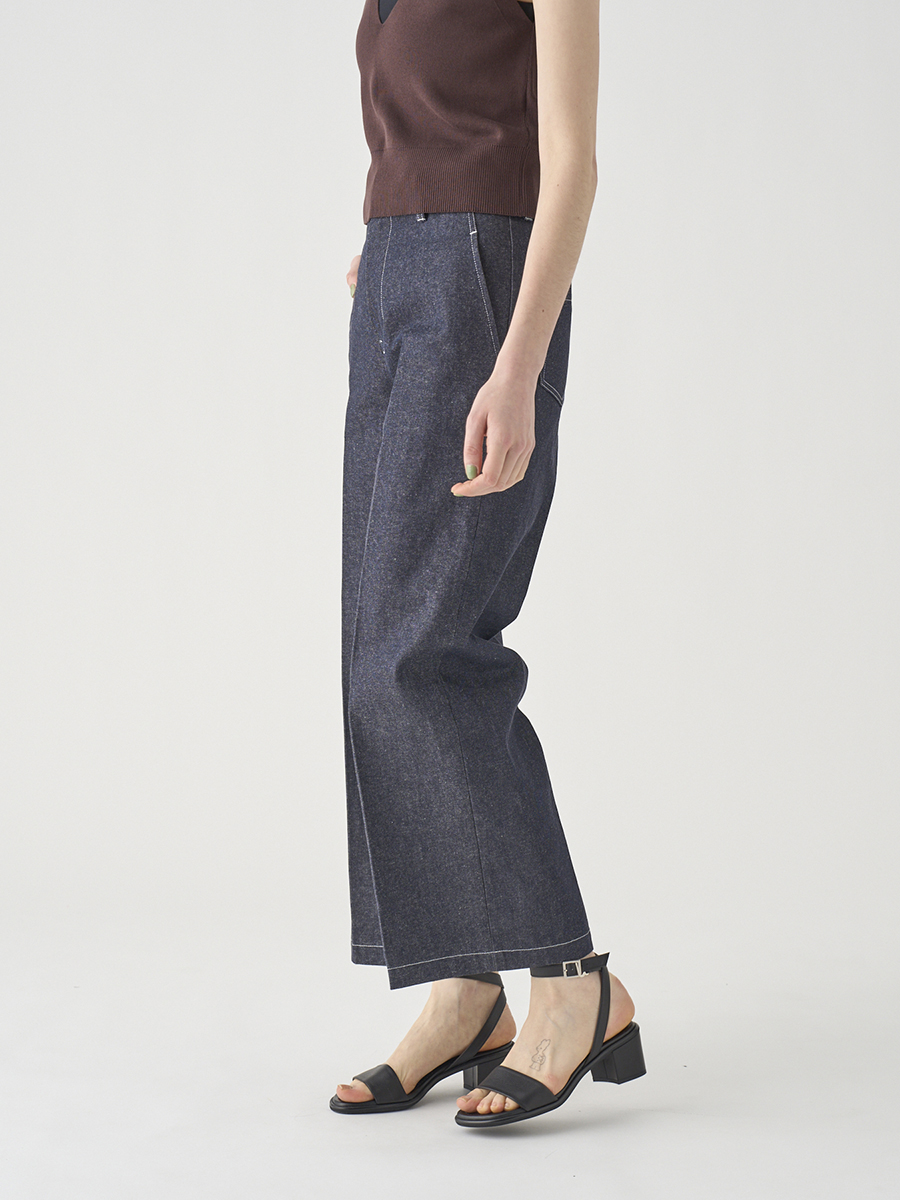 岡山の工場で丁寧に生産されたデニムを使用。デニムならではの素材感を活かしつつ、シルエットやディテールはミニマルに仕上げることで、大人の女性にぴったりの1本に。大人のカジュアルスタイルを上品に格上げします。