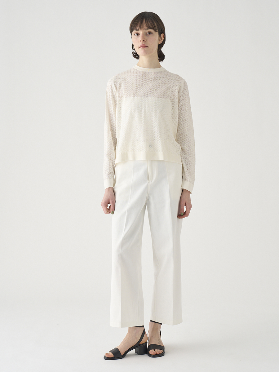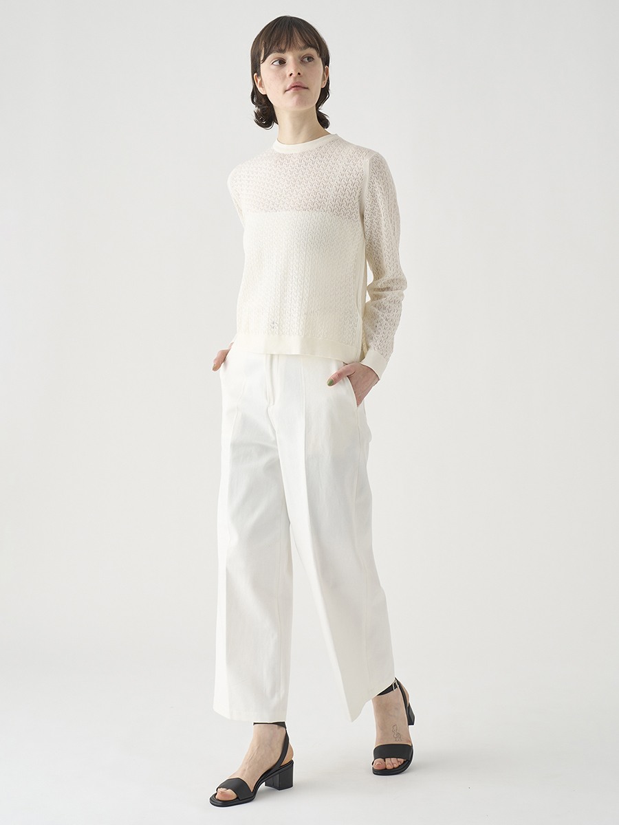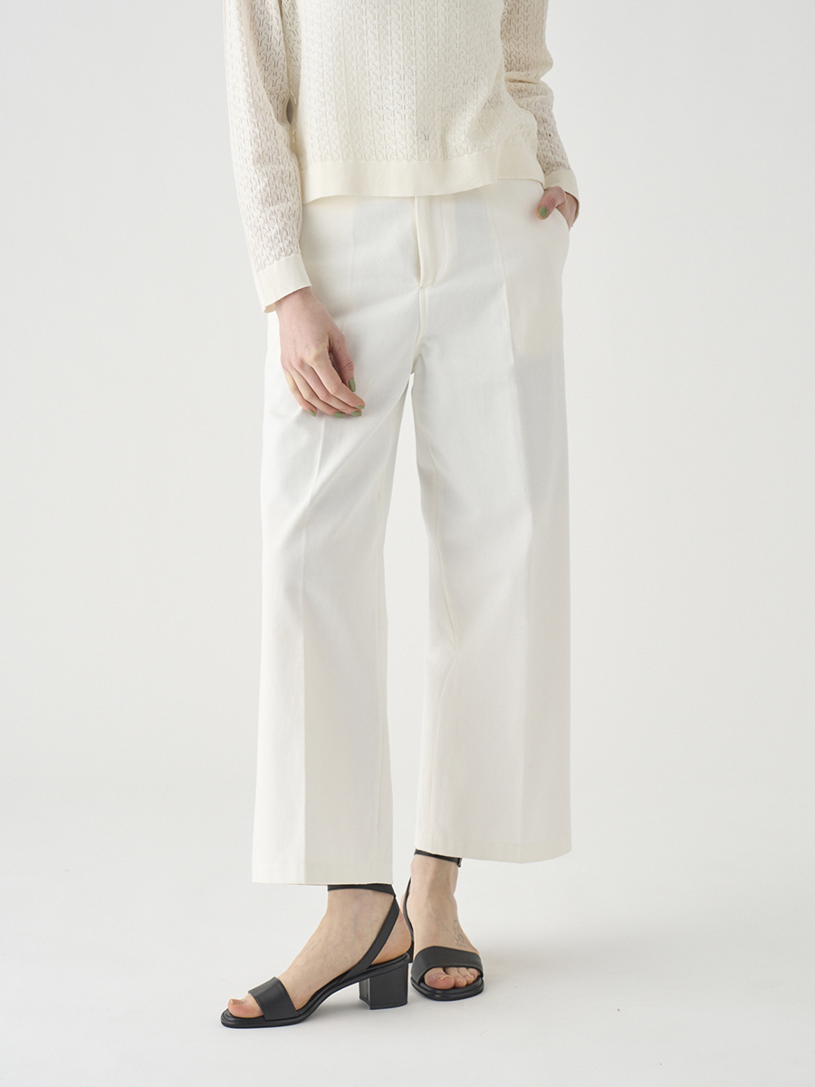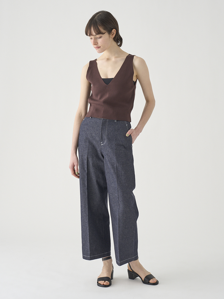 岡山の工場で丁寧に生産されたデニムを使用。デニムならではの素材感を活かしつつ、シルエットやディテールはミニマルに仕上げることで、大人の女性にぴったりの1本に。大人のカジュアルスタイルを上品に格上げします。