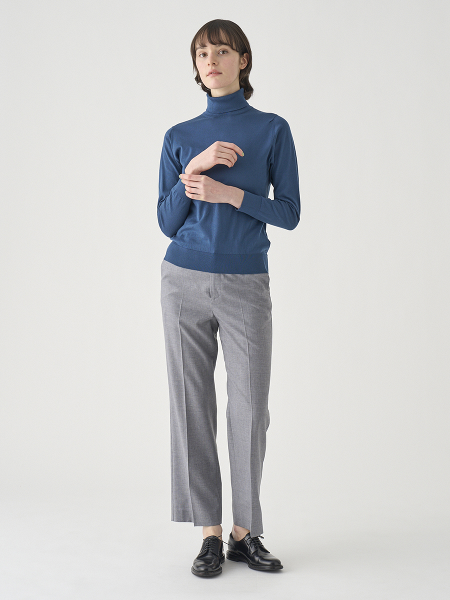 SUPER 100's原料を使用した平織りトロピカルウール。軽やかでクリアな表情の生地を贅沢に使用し、動くたびに美しいドレープが生まれます。カラーは一部異なりますが「FS157」も同素材です。