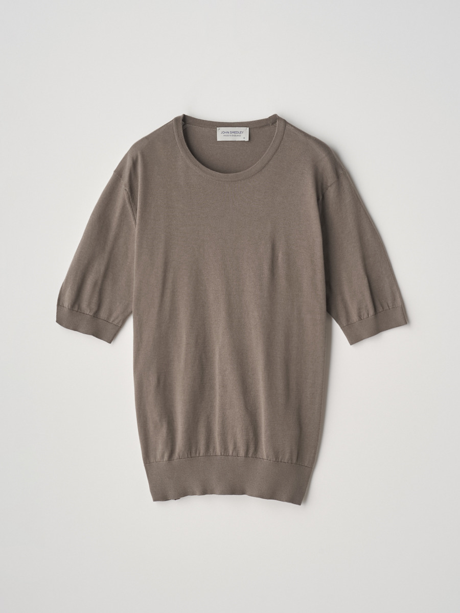 ジョンスメドレーの代名詞でもあるハイゲージの30Gニット。薄手でやや透けのある上品な質感。ハイゲージになればなるほど生産には高度なテクニックを必要とします。