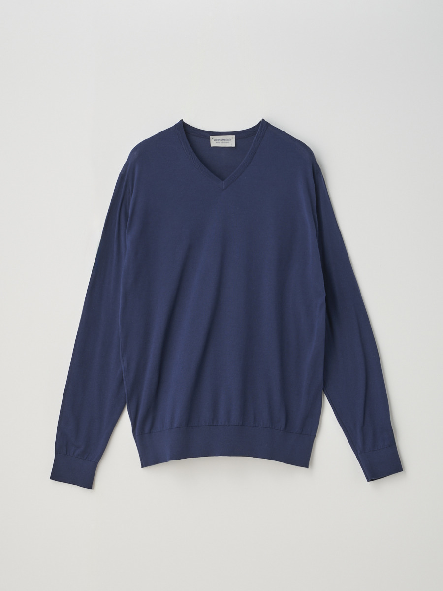 JOHN SMEDLEY定番モデル「MODERN FIT」の長袖Vネックプルオーバーニット。