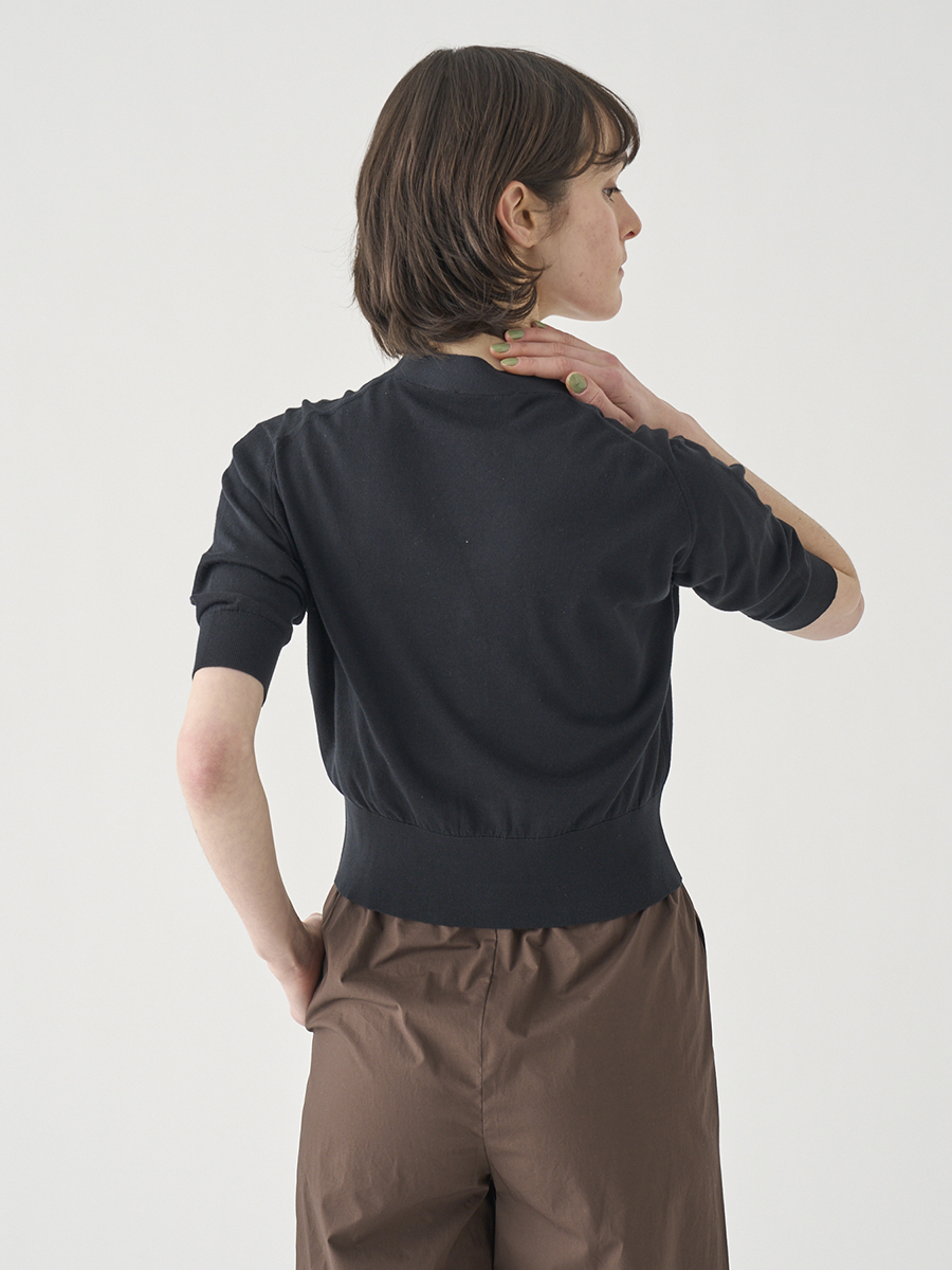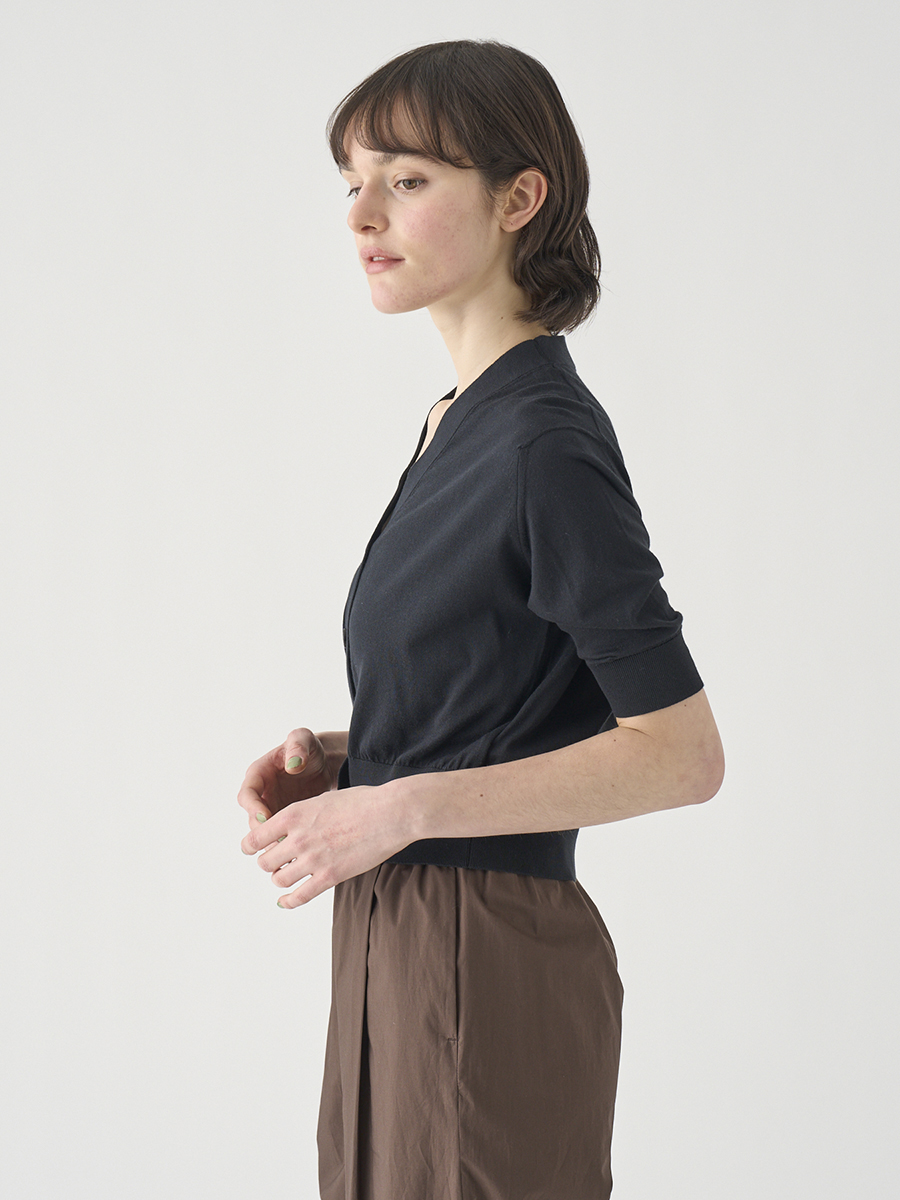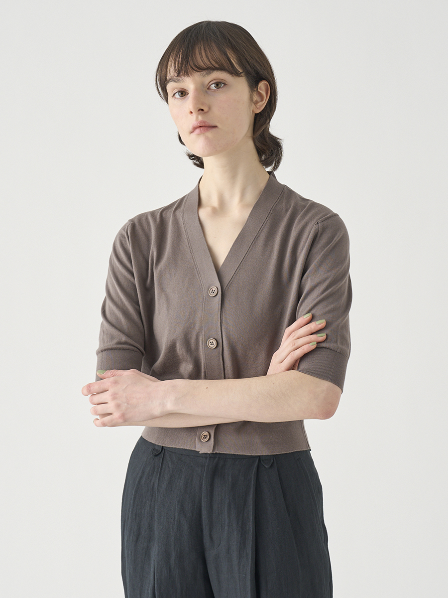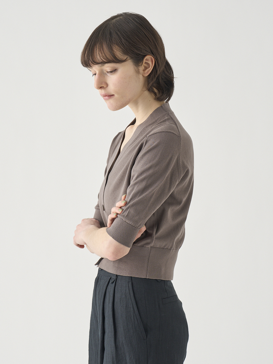 Vネック5分袖クロップドコットンニットカーディガン | S4741 | 30G