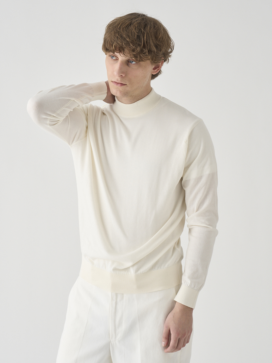 SPRING/SUMMER COLLECTIONでは、世界的にも評価の高い最高級綿「JOHN SMEDLEY'S SEA ISLAND COTTON(シーアイランドコットン)」を使用。シルクのような光沢とカシミアのような肌触りをあわせ持つ最高級天然素材です。淡いカラーにはやや透け感が見られます。