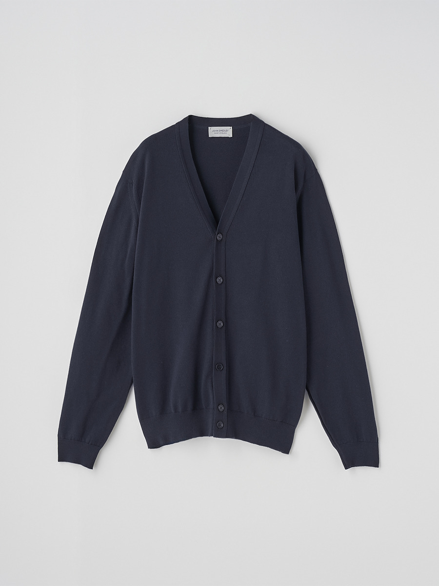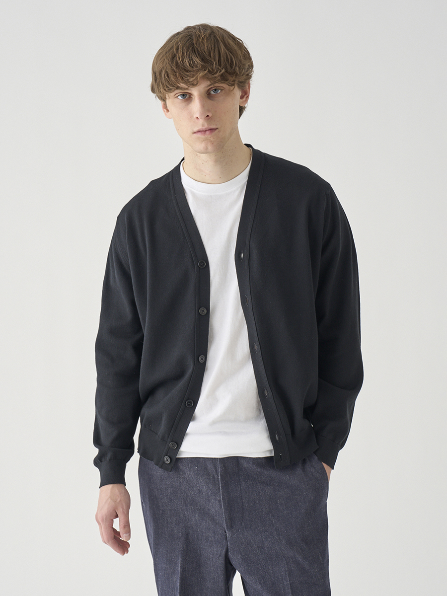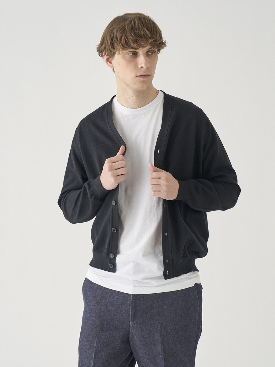 やや厚手の24Gコットンニットを、日本人に合いやすいすっきりとしたサイズスペックで仕上げた、シンプルなVネックカーディガン。程よくゆとりを持たせたシルエットは、上品で大人ならではのカジュアルスタイルに。肌寒い時期はシャツなどを合わせても響きにくく、暖かな季節はさらりとした羽織りに。ファインゲージニットならではの質感がコーディネートを上品に格上げします。