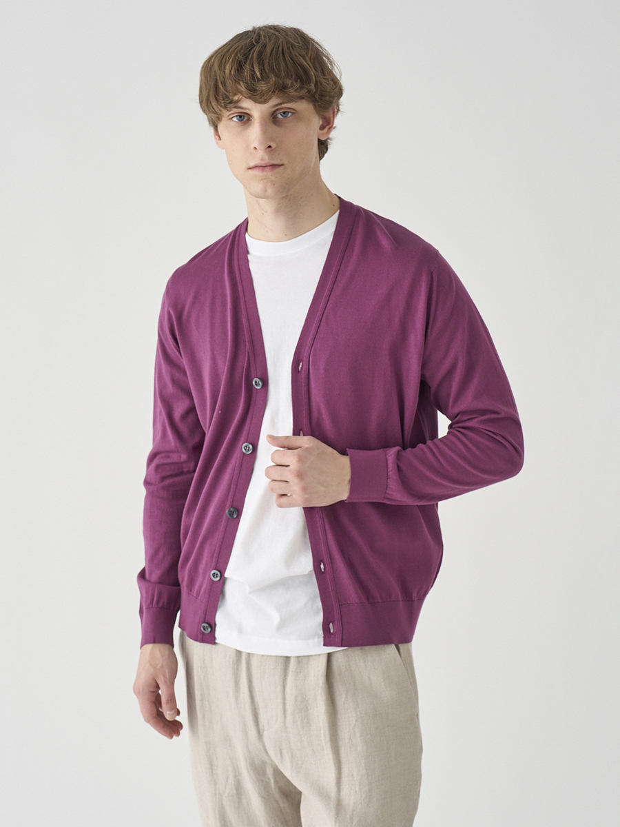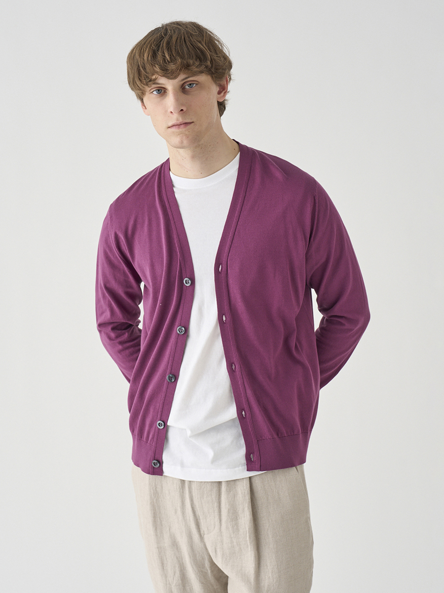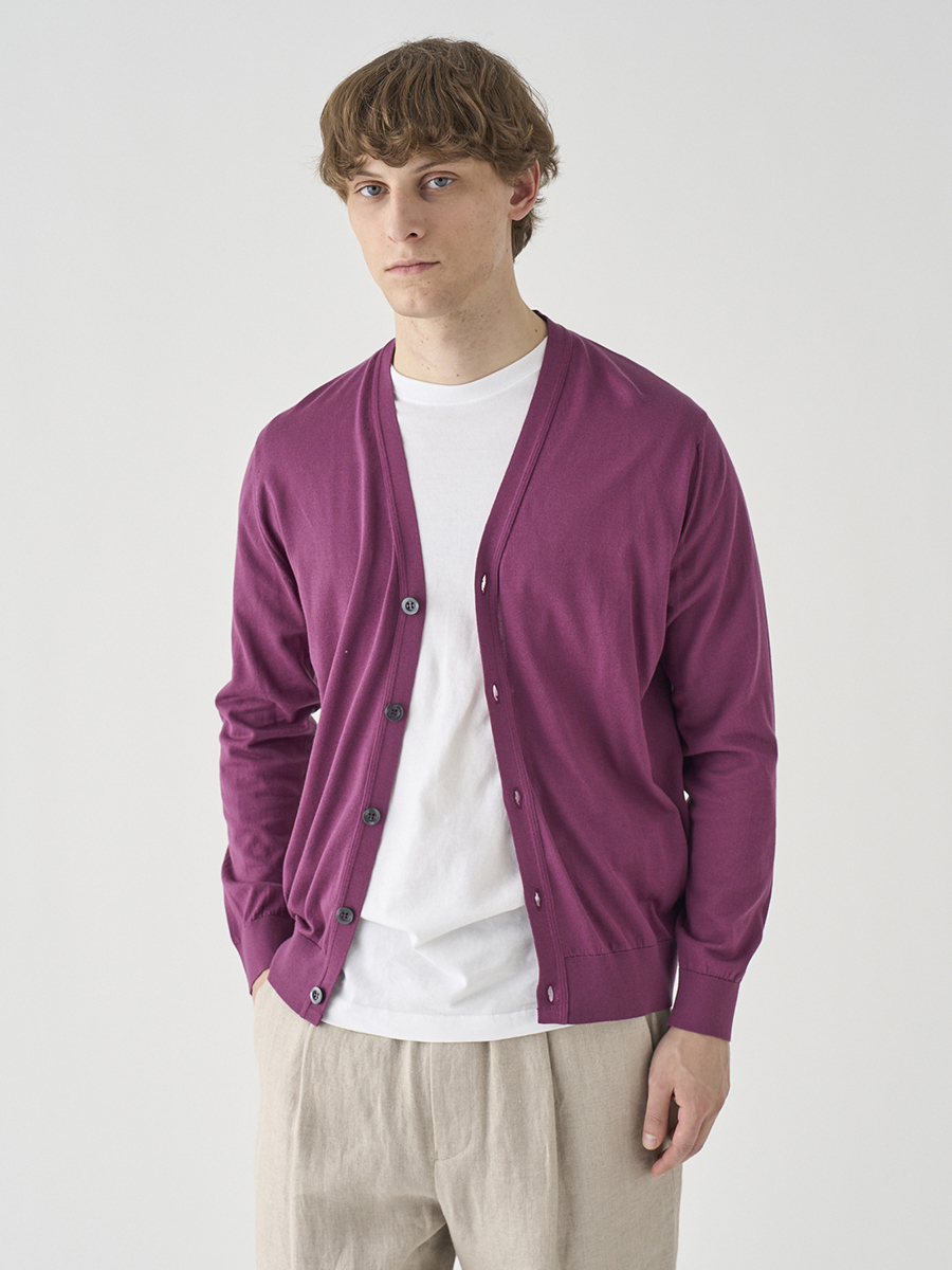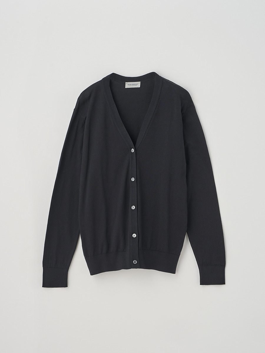 JOHN SMEDLEY定番モデル「MODERN FIT」の長袖Vネックカーディガン。