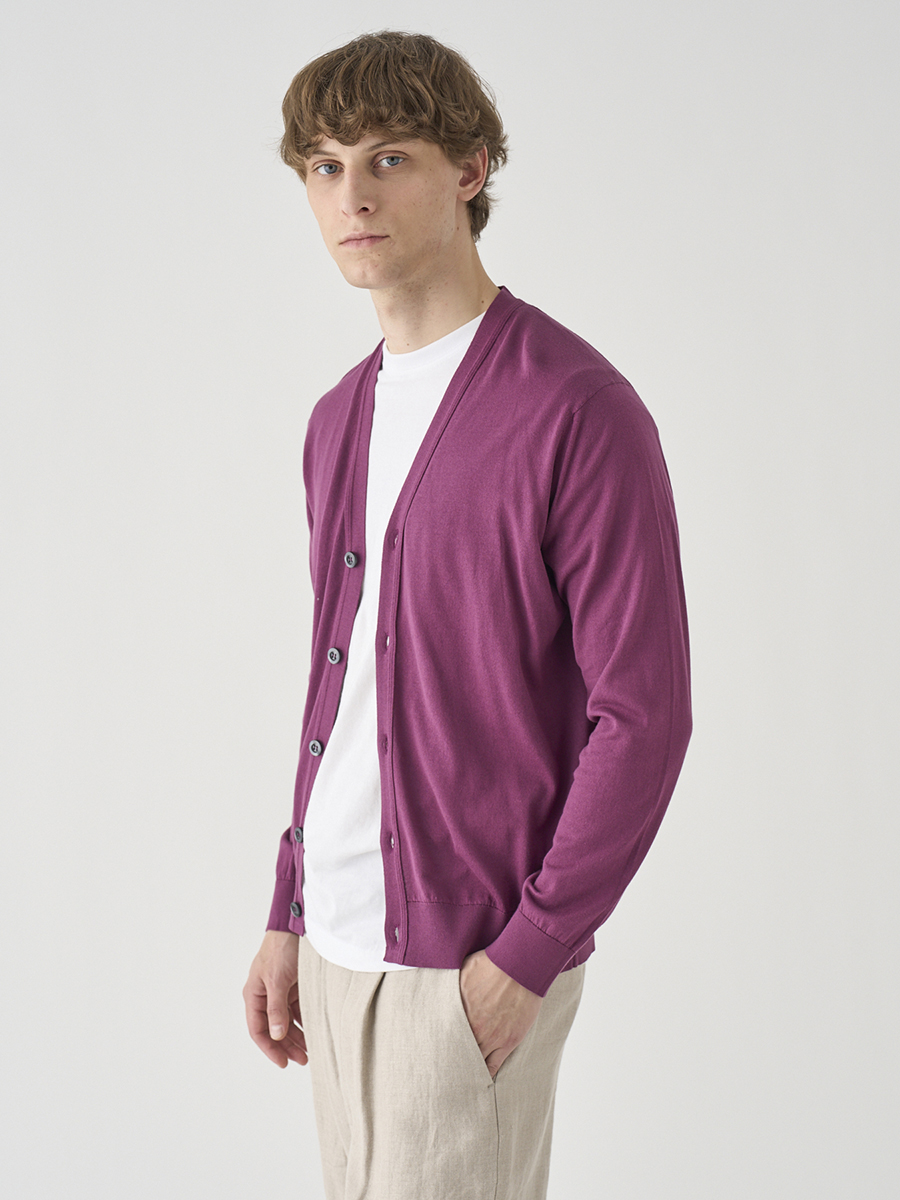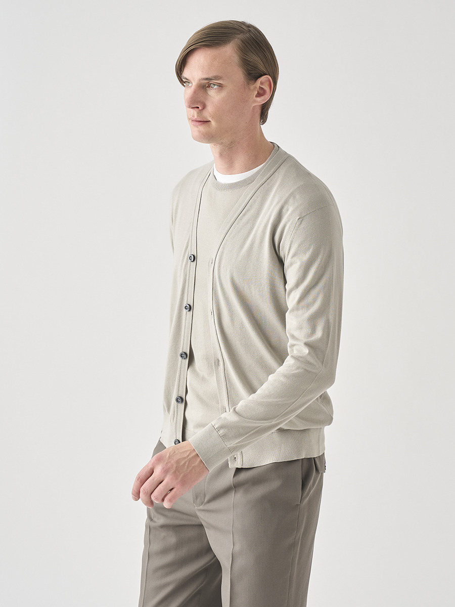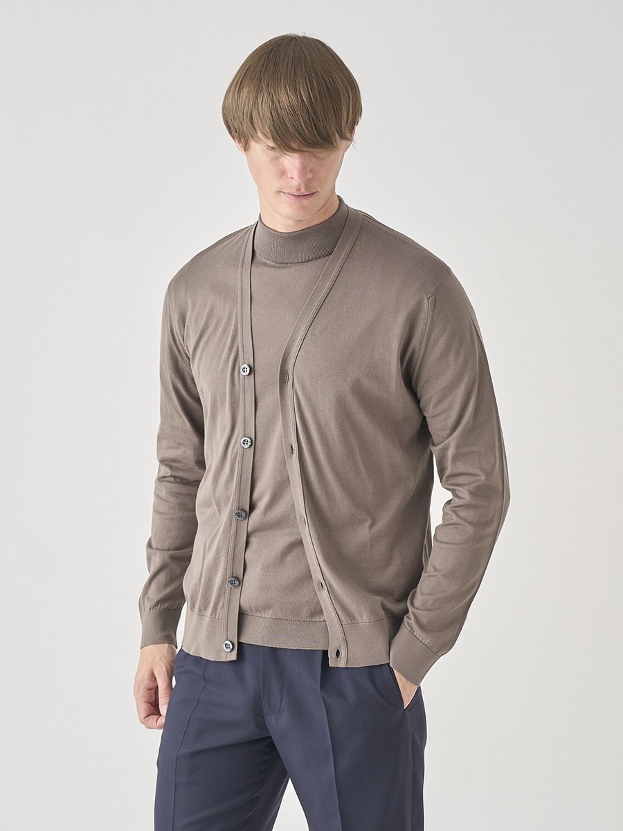 Vネック長袖コットンニットカーディガン | WISTING | 30G MODERN FIT