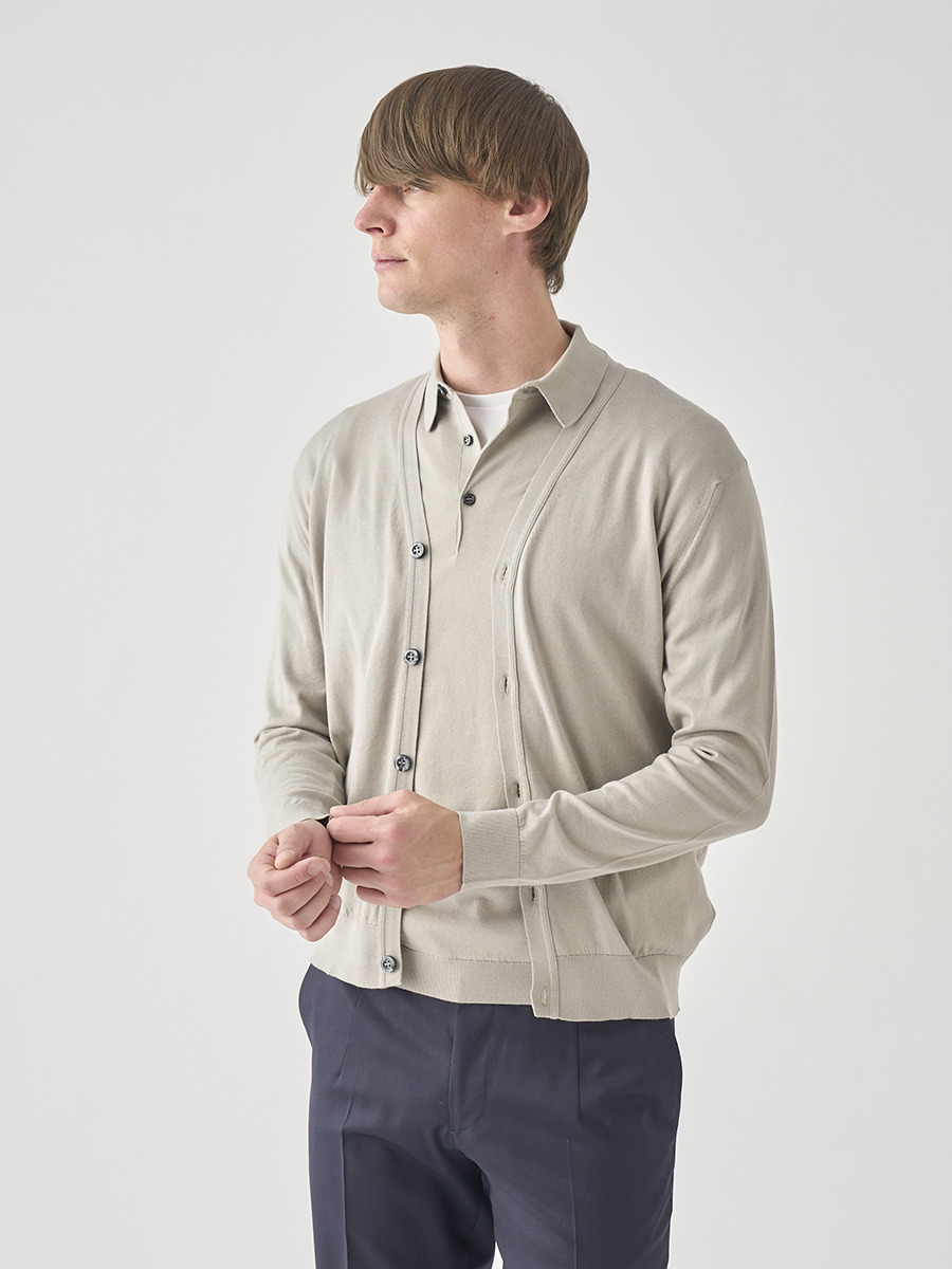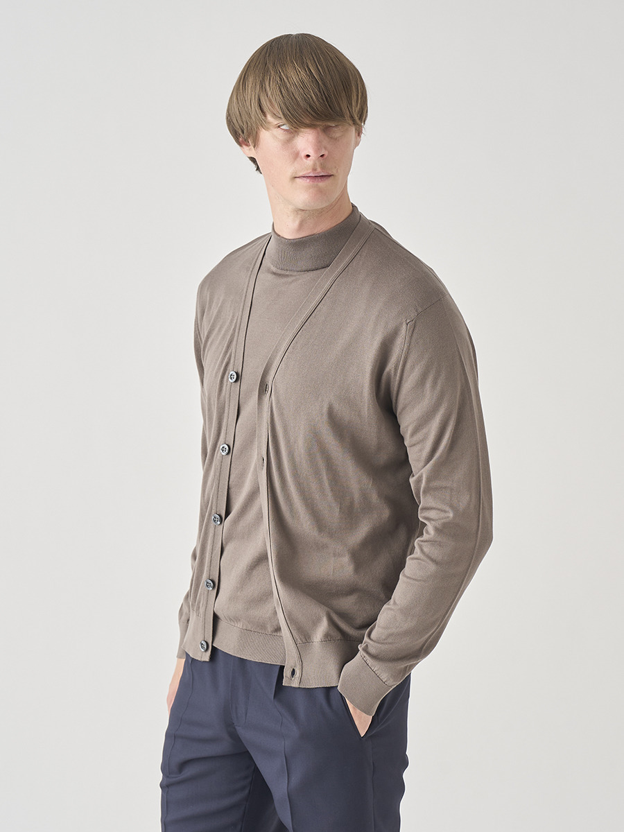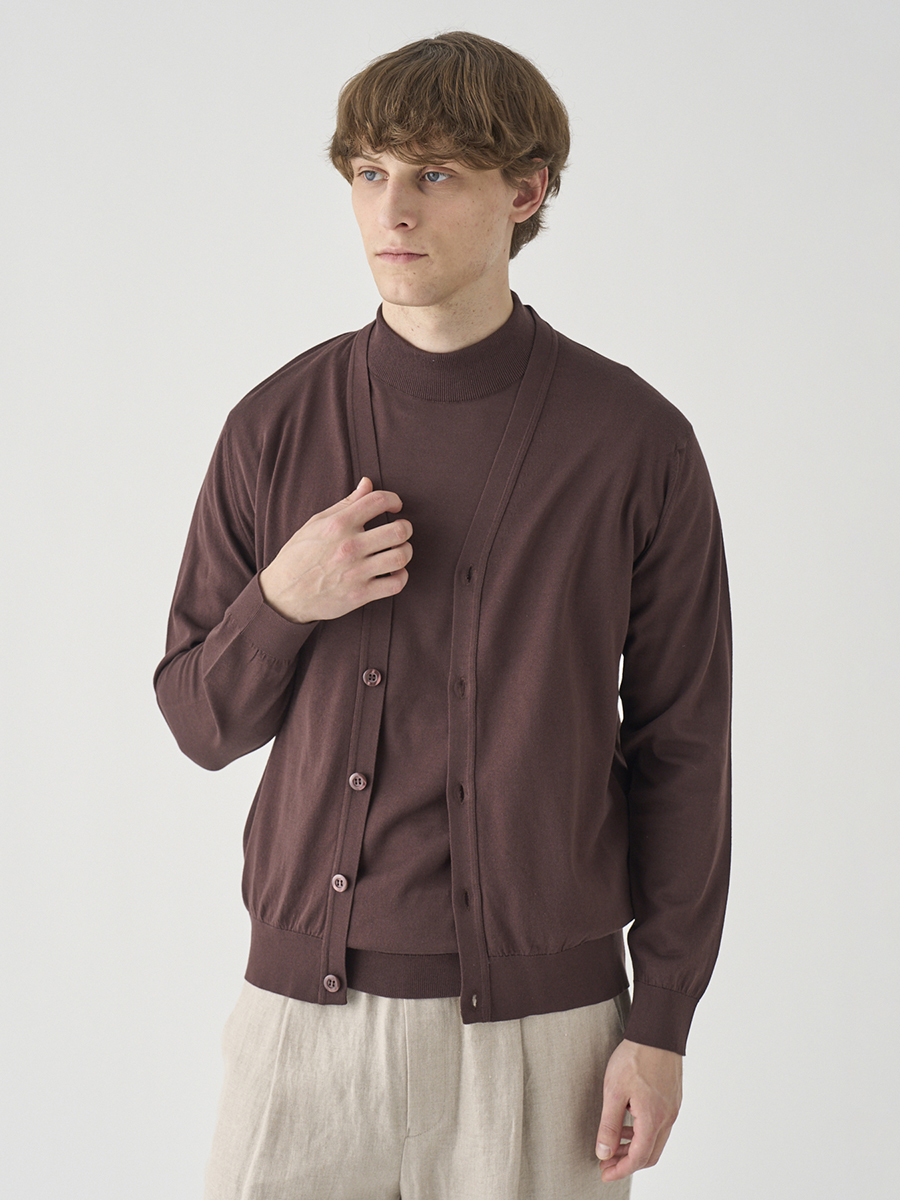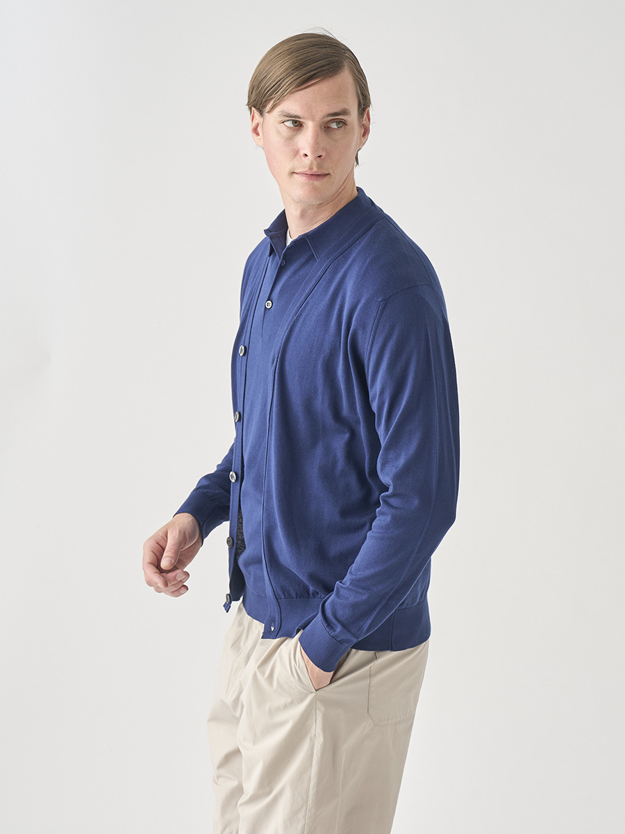 Vネック長袖コットンニットカーディガン | WISTING | 30G MODERN FIT