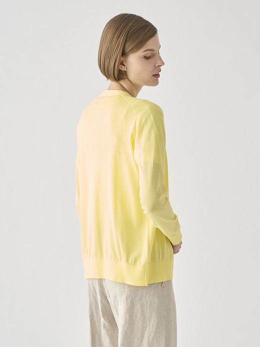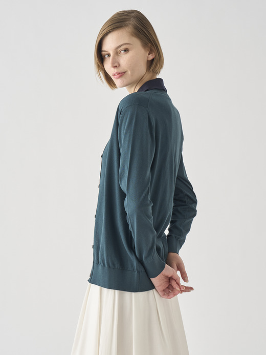 Vネック長袖コットンニットカーディガン | YASMIN | 30G MODERN FIT