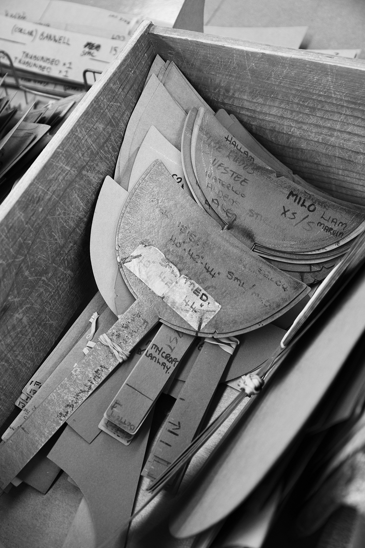彼女が毎日作業するテーブルの上には、いつも順番待ちをするメリノセーターやシーアイランドコットンのセーターで溢れています。多いときは、一週間で7000枚ものセーターに向き合い、マシンメイドのセーターに手作業ならではのニュアンスを加えていく。「ここで働き始めたばかりの頃、心底驚いたわ。こんな大人数の職人が、たった1 着のセーターに関わっているということにね。私がやっているネックラインの工程もまさか手で切ってるなんて、みんな想像してないでしょうね」。