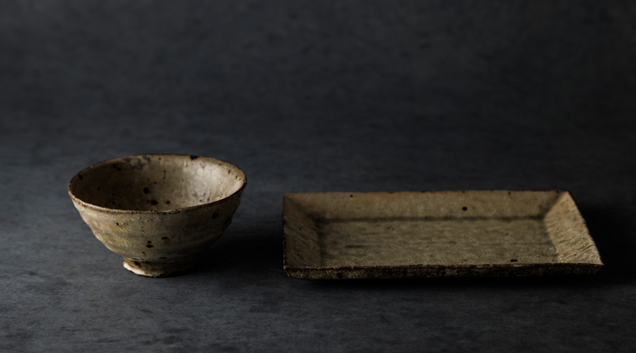 尾形アツシ|荒山粉引めし碗 ヒビ粉引長方皿