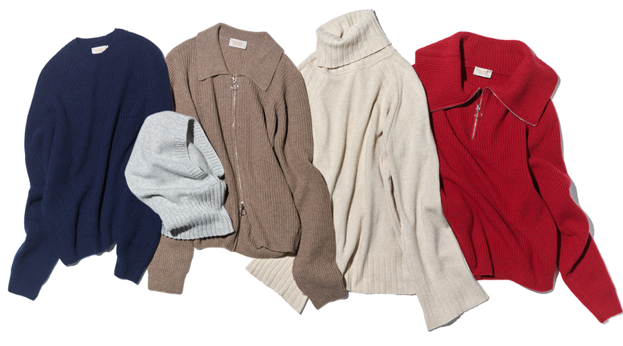 (左)クルーネック「LYLLA」は締め付けの少ないシンプルなリブ編みで、ふんわりと包まれるような柔らかな心地よさ。パートナーと合わせれば(メンズの「OXNARD」)リンクコーデも楽しめます。