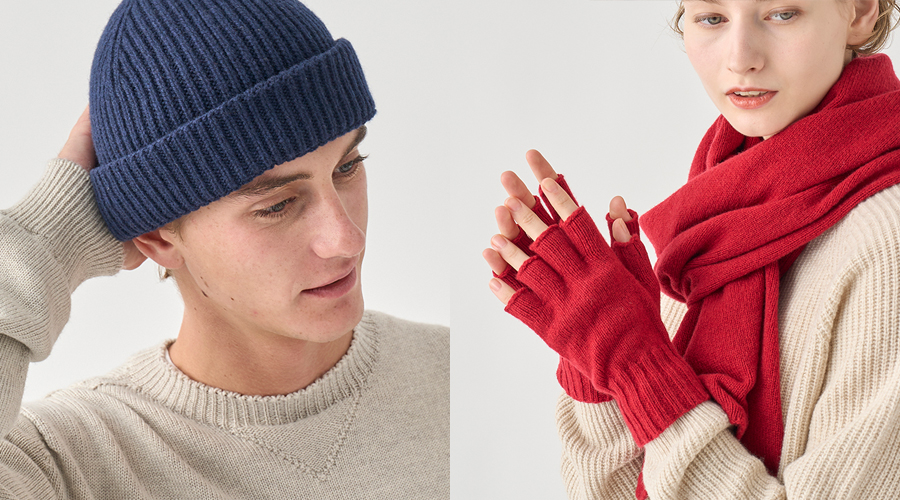 ユニセックスにお楽しみいただけるニット小物も、カラーや質感を豊富にラインナップ。