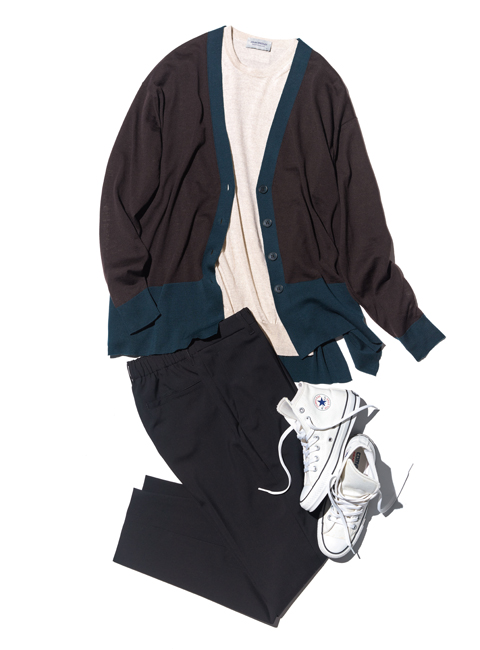 リットがエアリーな印象のバイカラーカーディガン
