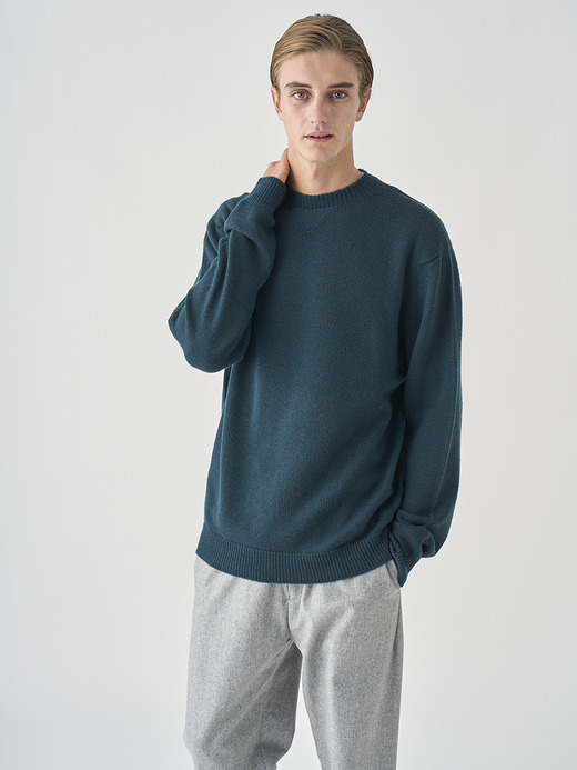 (中)コモンフィット特有のドロップショルダーに身幅にゆとりをもたせたモックネック「AMITY」。着丈とウエスト