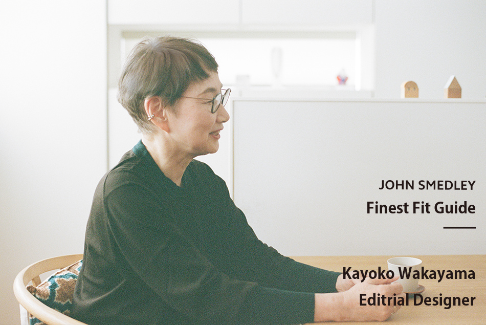「服が似合う人」は、何が他と違うんだろうか。シルエット? 色合わせ? それとも素材感?どれもきっと間違いじゃないけれど、決定的なのは多分、また別の部分。ジョン スメドレーのニットはシンプルで寡黙な分、着る人の個性がはっきりと映し出される。一見ずっと同じようでいて、少しずつ時代に合わせて変化をしてきたジョン スメドレーのニットウェアがよく似合う人たちの肖像と、その理由。今回はエディトリアルデザイナーの若山嘉代子さんの場合。